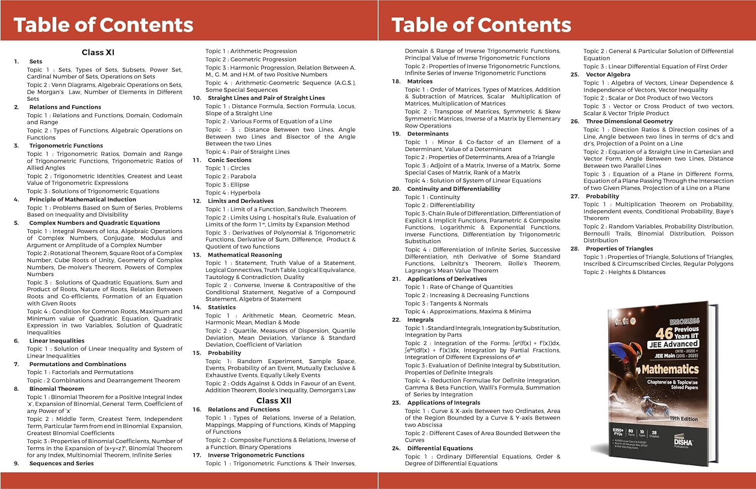 Generic Name : Errorless 46 Previous Years IIT JEE Advanced (1978 – 2023) + JEE Main (2013 – 2023) MATHEMATICS Chapterwise & Topicwise Solved Papers 19th Edition | PYQ Question Bank in NCERT Flow with 100% Detailed Solutions for JEE 2024