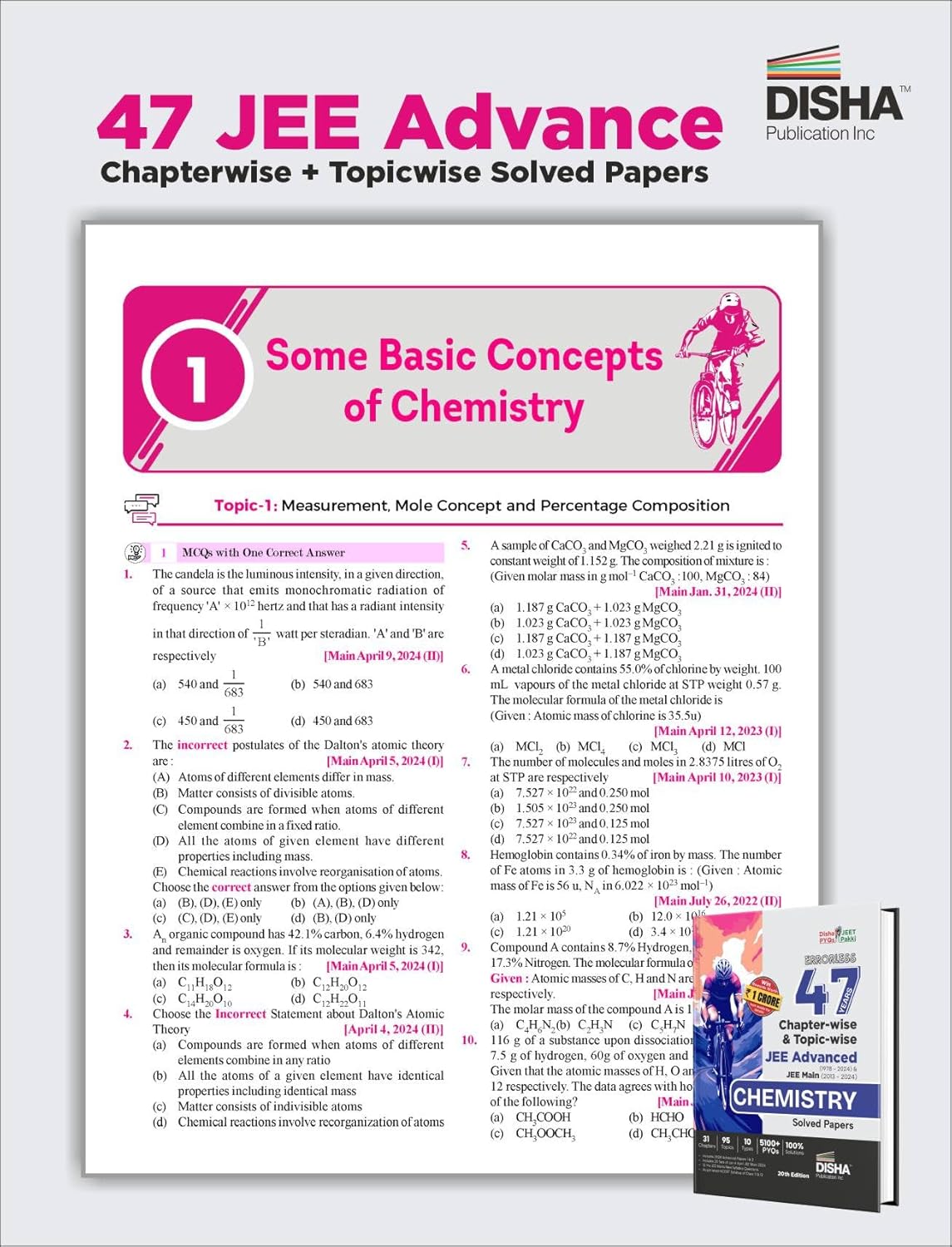 👉🏼 The thoroughly Revised & Updated 20th edition of the book “Errorless 47 Previous Years Chapter-wise & Topic-wise IIT JEE Advanced (1978 – 2024) + JEE Main (2013 – 2024) CHEMISTRY Solved Papers” is an integrated book, which contains Chapterwise & Topicwise collection of previous JEE Advanced (including 1978 – 2012 IIT-JEE & 2013 – 24 JEE Advanced) & past JEE Main 2013 to 2020 (Offline Papers) and 2013 – 2024 (all 146 Online Papers).