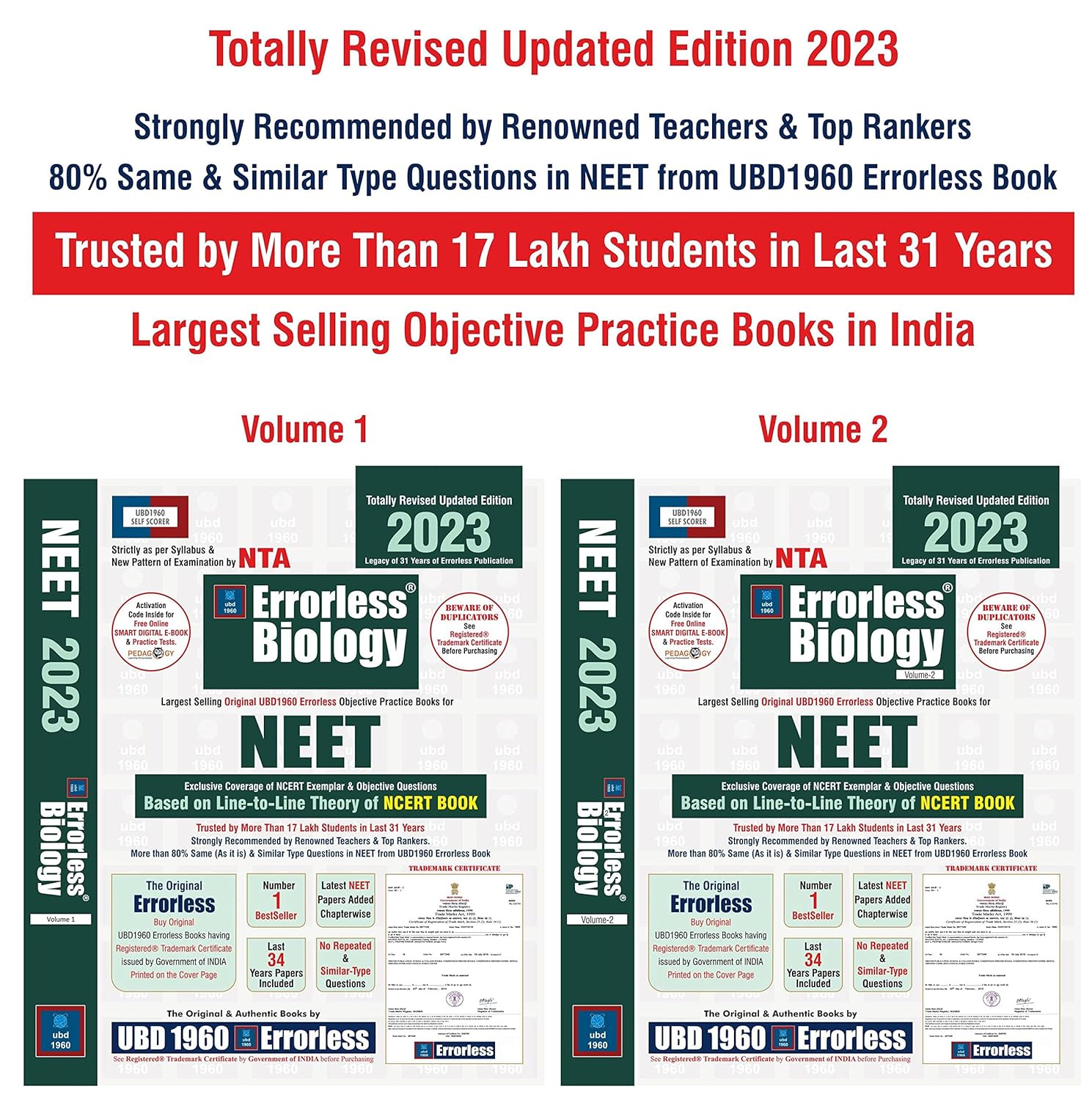 Errorless NEET Physics 2023 (Vol 1 & 2) & Errorless NEET Biology 2023 (Vol 1 & 2) As Per New Pattern by NTA & NCERT Based New Revised 2023 Coloured Edition : UBD 1960