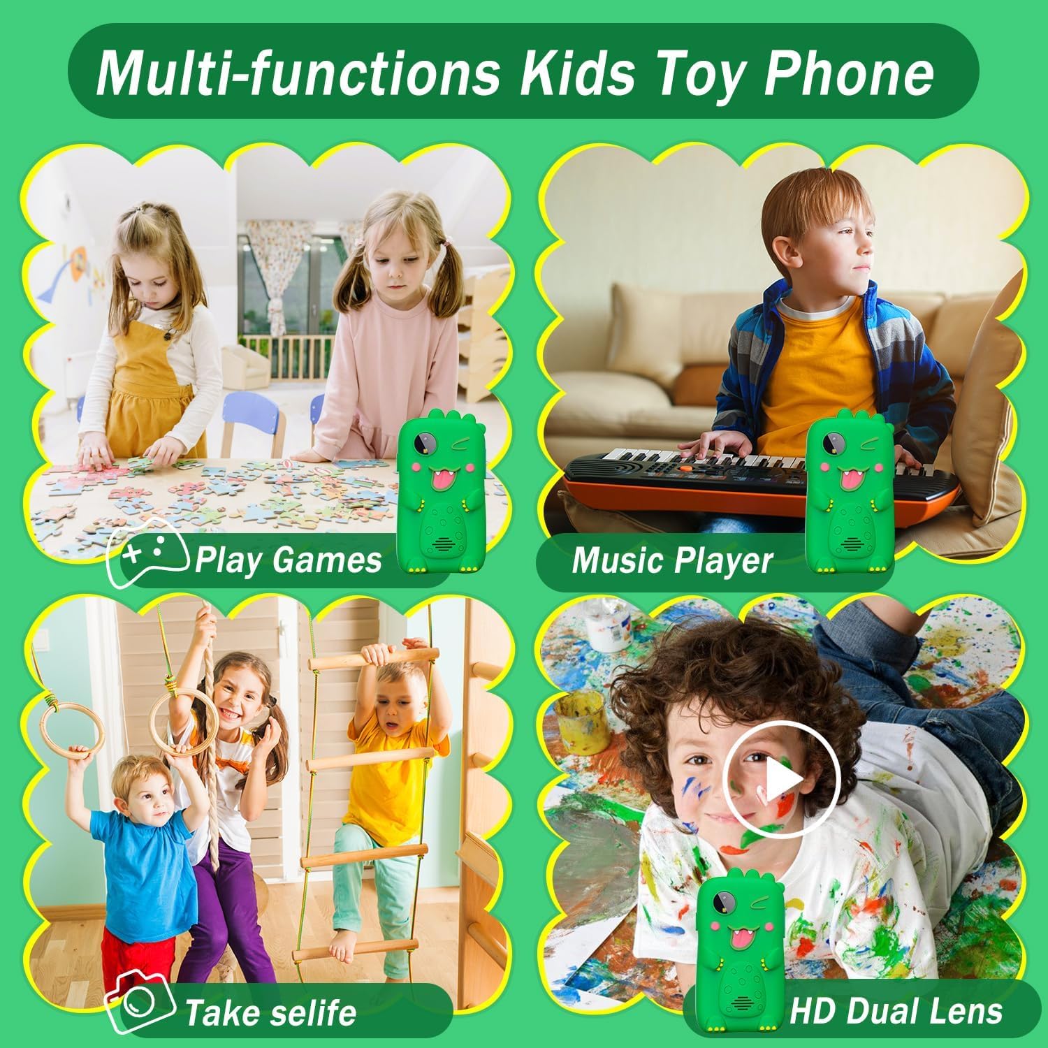【Dual Camera with MP3 Player】The toy phone features front and rear cameras with 23 cute cartoon frames and is a good camera toys for 3 4 5 6 7 8 years old boys and girls. It will help improve your child’s imagination and concentration.
