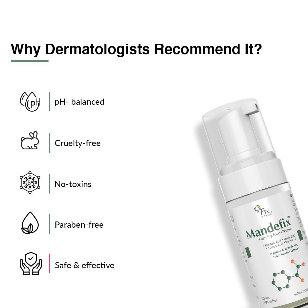 Fixderma Mandefix Foaming Cleanser with 2% Salicylic Acid | Nondrying Cleanser, Exfoliator, Reduces Skin Ageing | Salicylic Acid Face Wash for Sensitive and Acne Prone Skin – 100ml