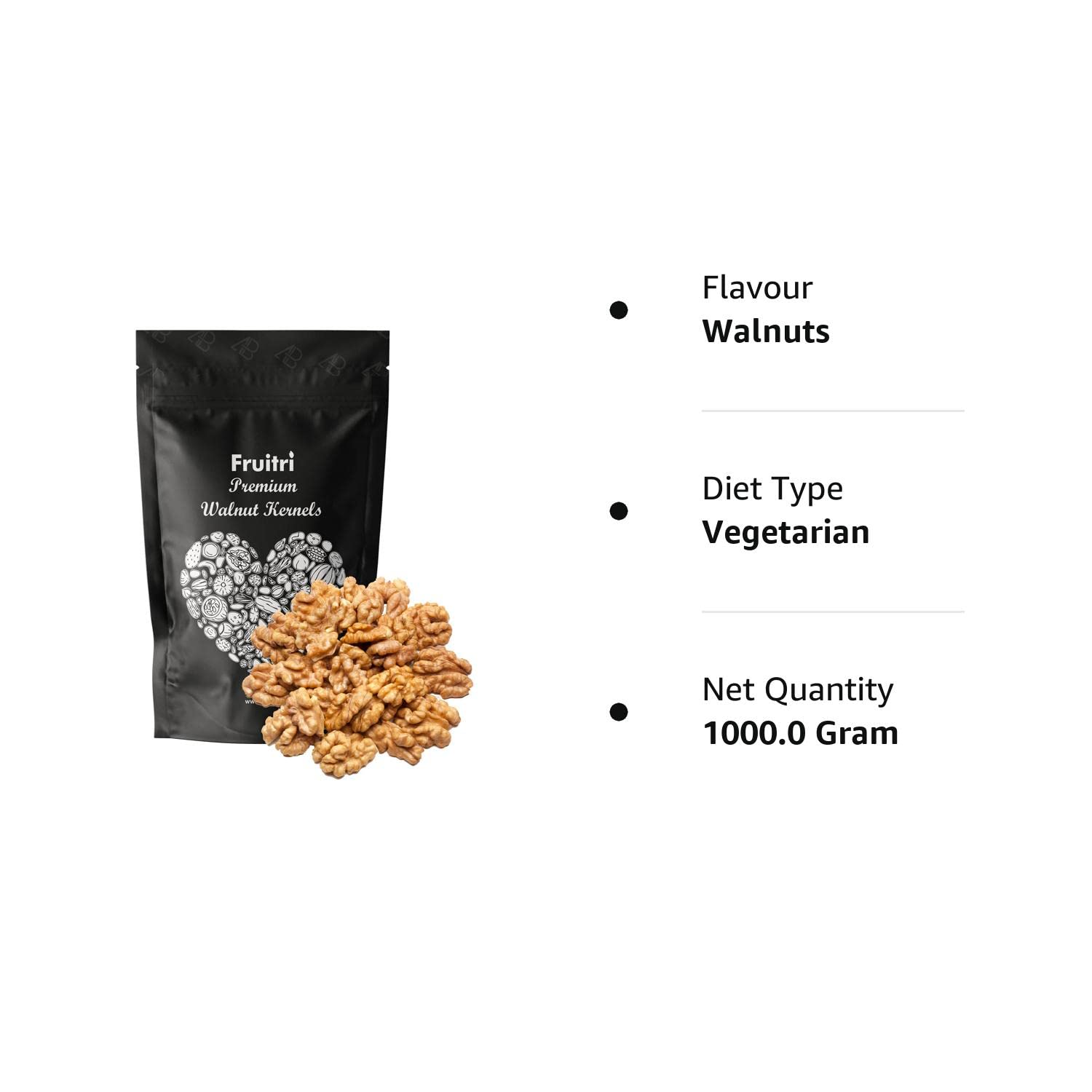 Fruitri Premium Kashmiri Walnuts 1kg Without Shell, Akhrot Giri, Walnut Kernels
