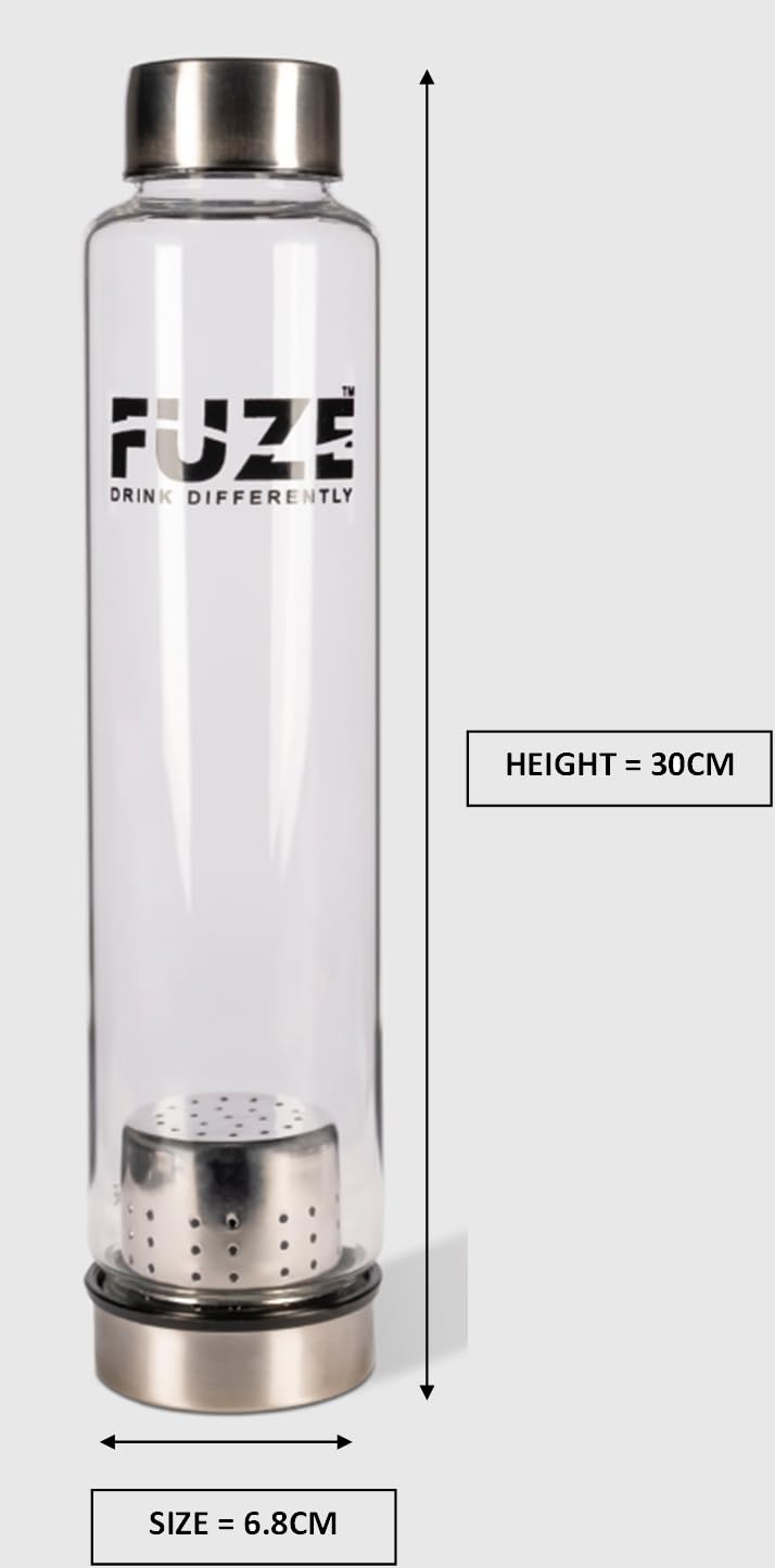 Fuze Glass bottles with Removable Tea Infuser | Borosilicate Glass Bottle | Perfect for Home & Office | Easy to Clean | Made in India (Black, 700ml)