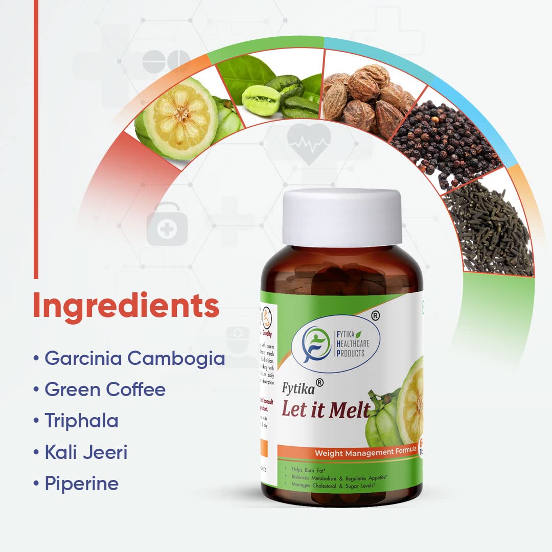Fytika Healthcare Products Let it Melt Weight Management Tablets| Garcinia Combogia, Green Coffee, Triphala, Kali Jeeri| Healthy Weight Loss | Tablets For Men & Women (60 Tablets)