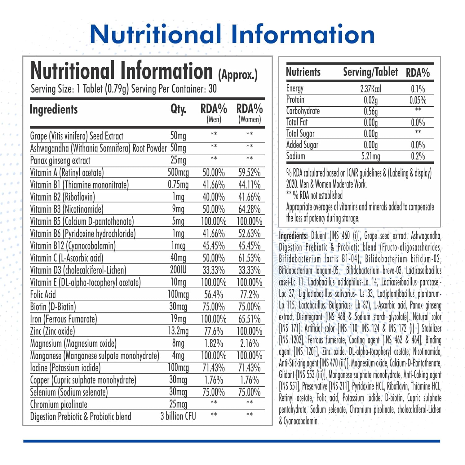 Enhances Immunity & Focus: This multivitamin and multimineral tablets contain Ginseng, ashwagandha that have antioxidant and anti-inflammatory properties. It supports the immune system to fight off infections. It also helps in improving focus, concentration & alertness.