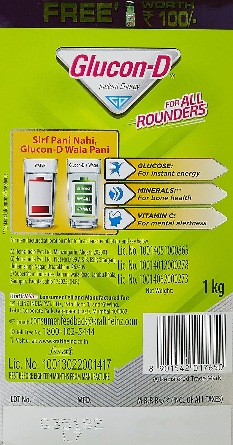 Glucon-D Instant Energy Nimbu Panni, 1kg with Free Sipper