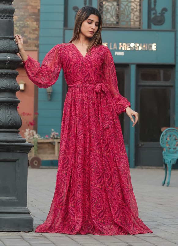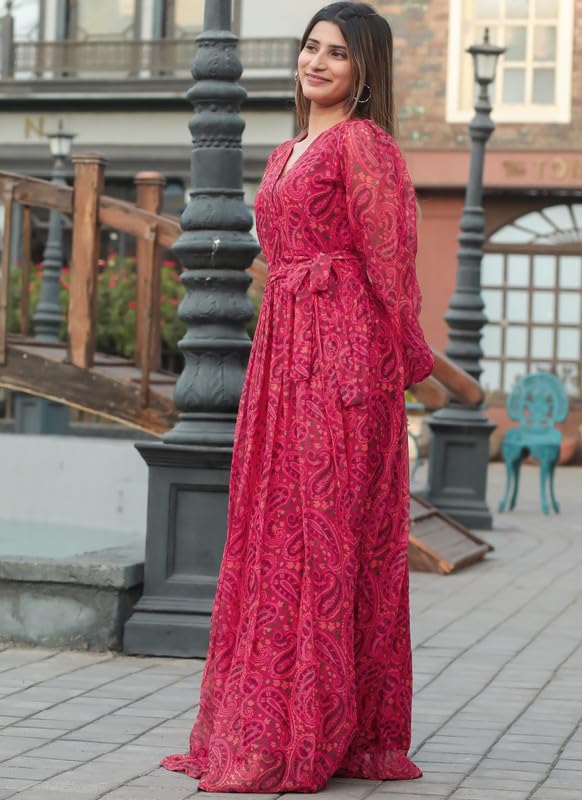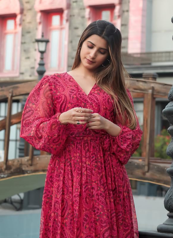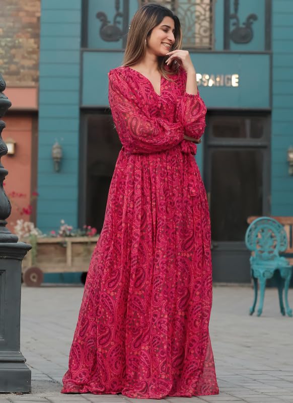 Gulkanya STYLE Chiffon Printed A-Line Flared Dress for Women