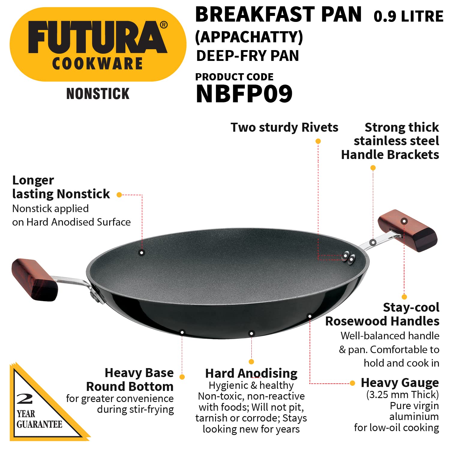 | Included Components | 1-Piece Futura Non-Stick Appachatty Round Bottom Breakfast Pan with Steel Lid (22cm/0.9 Litre) |