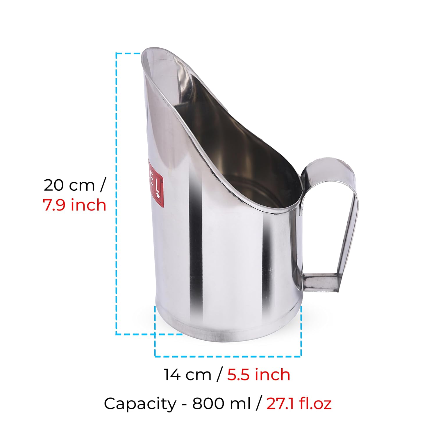 Dimension: 14 x 11 x 20 cm (LxBxH), Weight: 250 grams, Capacity: 800 ML.