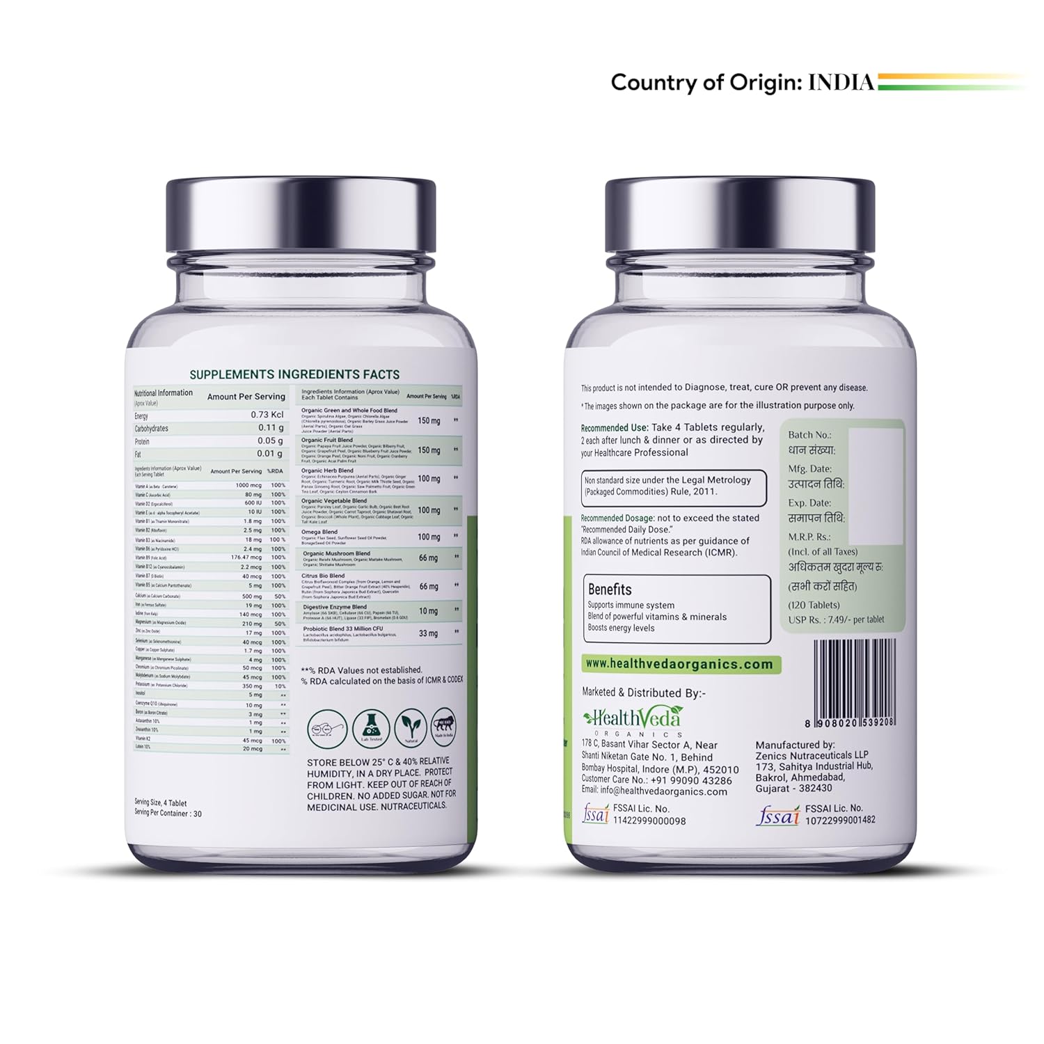 NO SIDE EFFECTS: Health Veda Organics Whole Food Multivitamin Tablets is free from harmful toxins & contains no preservatives. It is safe to be consumed as a dietary supplement on regular basis.