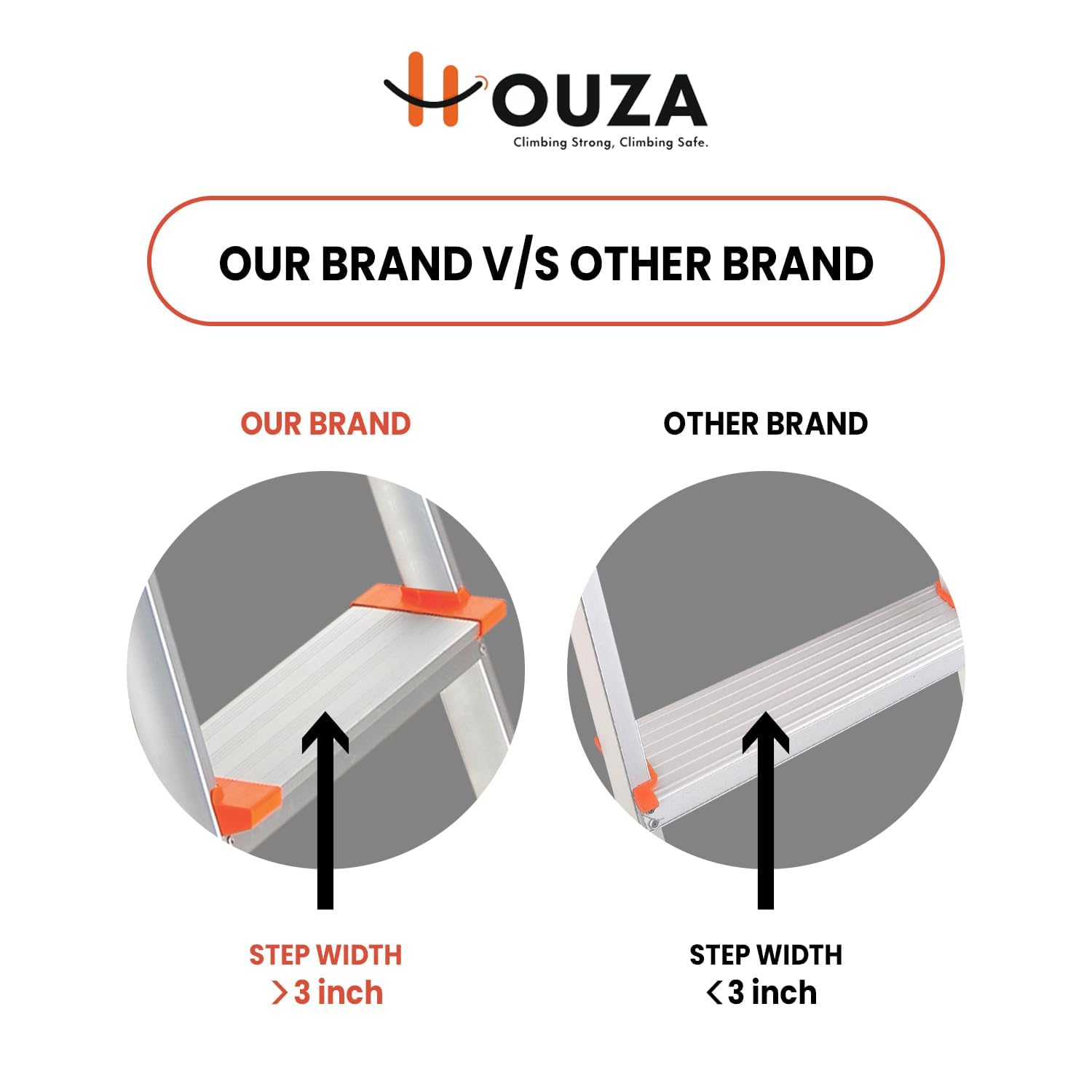 Reaching high places at home is safe and easy when you use the HOUZA Aluminium Ladder with Hand Railings. Its hand railings on the sides help you hold and climb for support, letting you feel safe. Also, this ladder is resistant to different weather conditions, thus ensuring a long life even if the space is full of moisture or heat. Furthermore, each step on this ladder has an anti-skid layer that lets your foot get proper support while climbing and getting down.