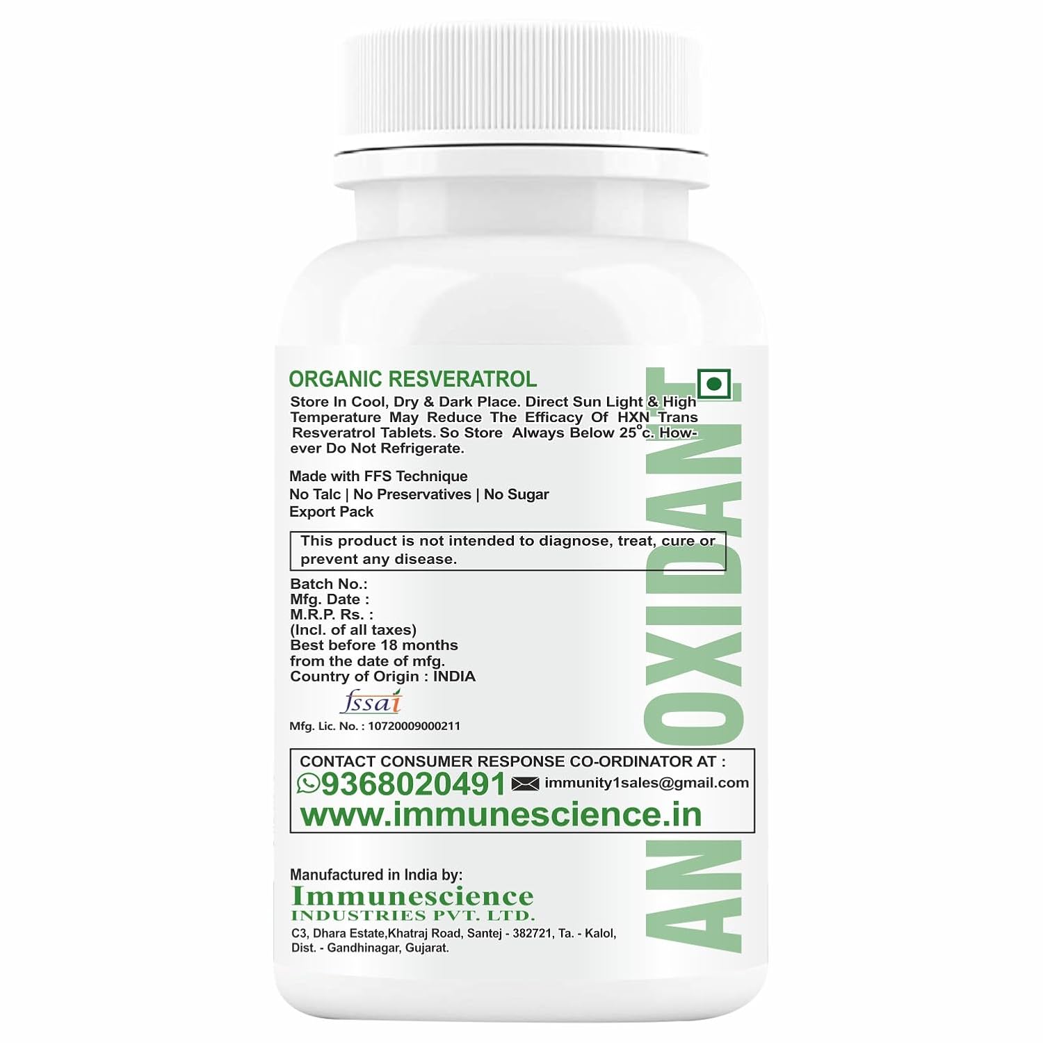 Packer : Immunescience INDUSTRIES PVT. LTD. C3 Dhara Estate Khatraj Road Santej- 382721 Ta- Kalol Dist- Gandhinagar Gujarat
