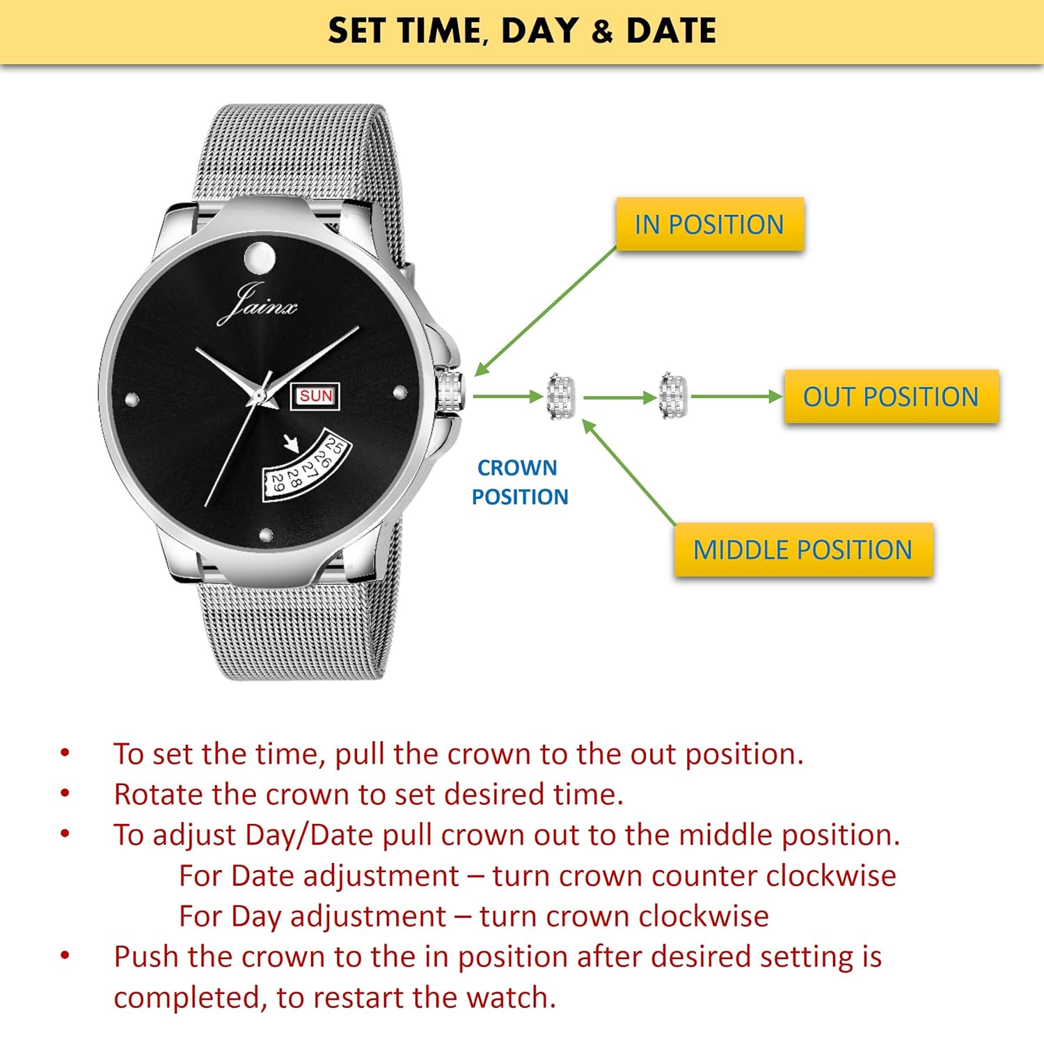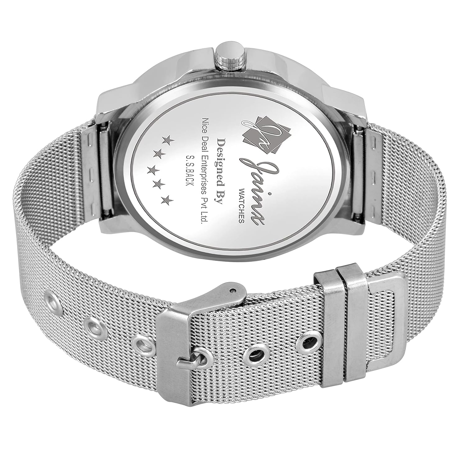 jainx Day and Date Silver Mesh Chain Analog Wrist Watch for Men – JM7118