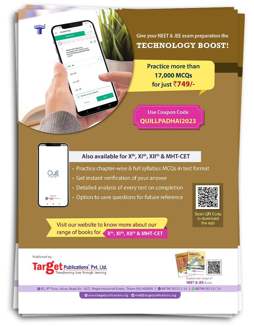● Questions from other Competitive Exams: Questions from various examinations such as MHT CET, KCET, WB JEE, AP EAMCET, AP EAPCET, TS EAMCET (Med. and Engg.), GUJ CET are exclusively covered.