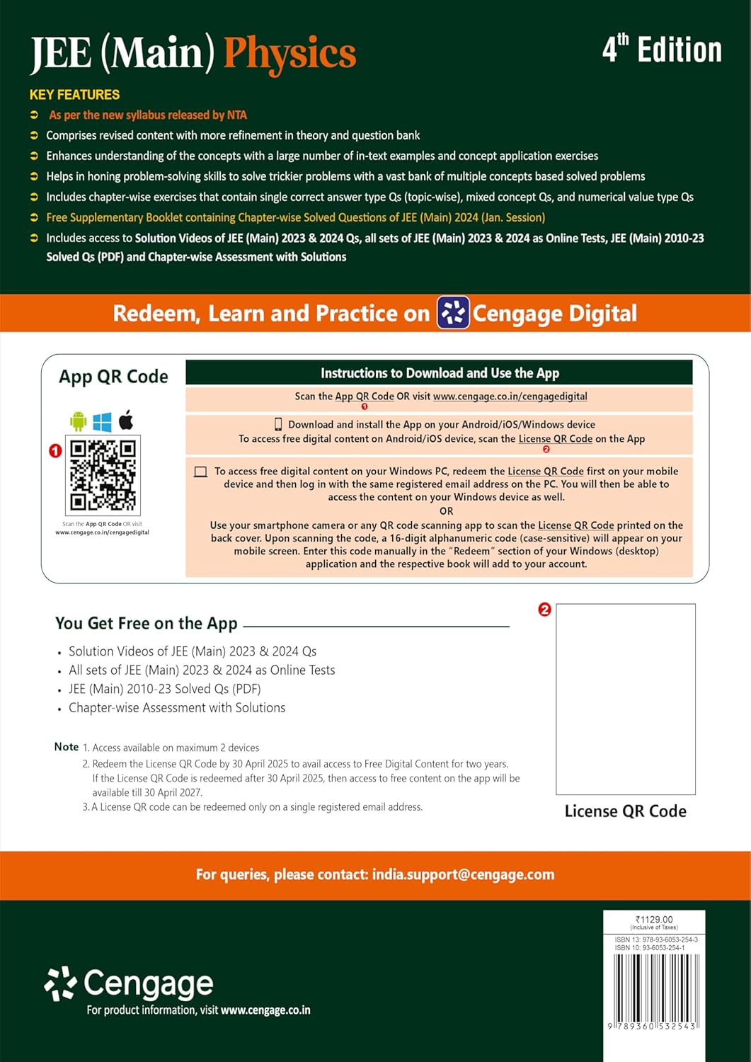 JEE (Main) Physics, a Cengage Exam Crack Series title, has been designed in keeping with the needs and expectations of students appearing for JEE (Main). Its coherent presentation and compatibility with the latest prescribed syllabus and pattern of JEE (as per the latest NTA notification) will prove extremely useful to JEE aspirants.