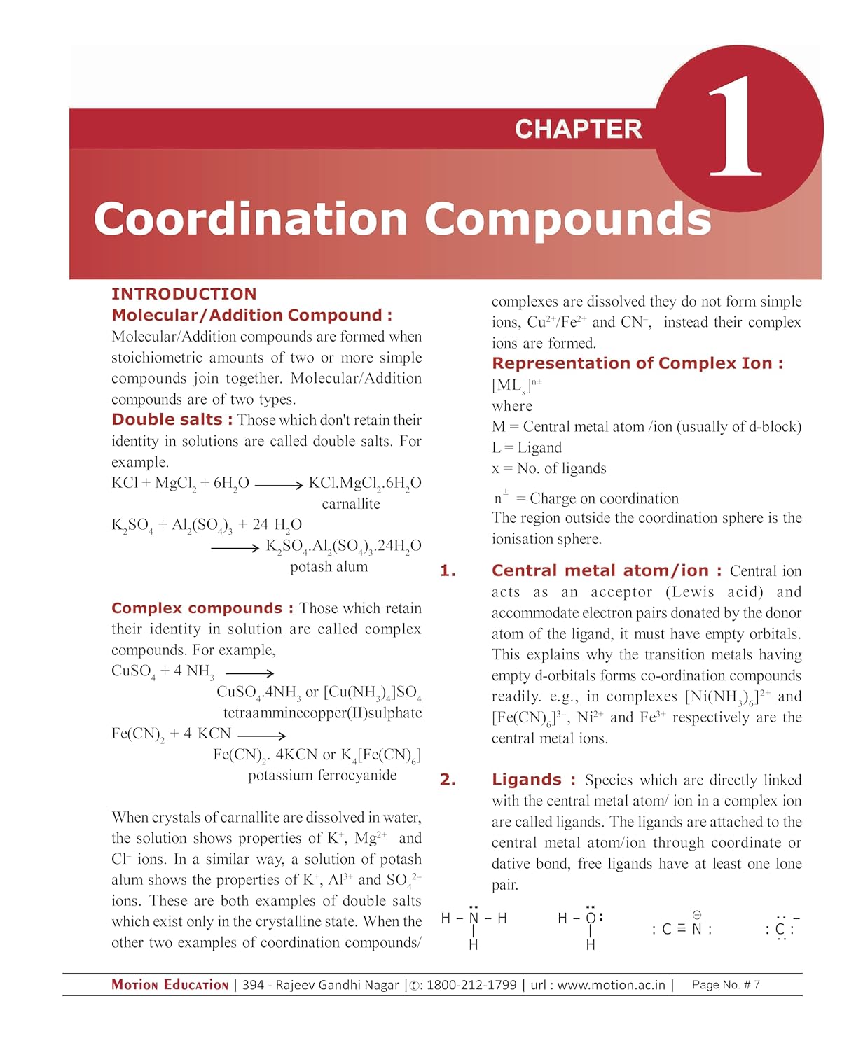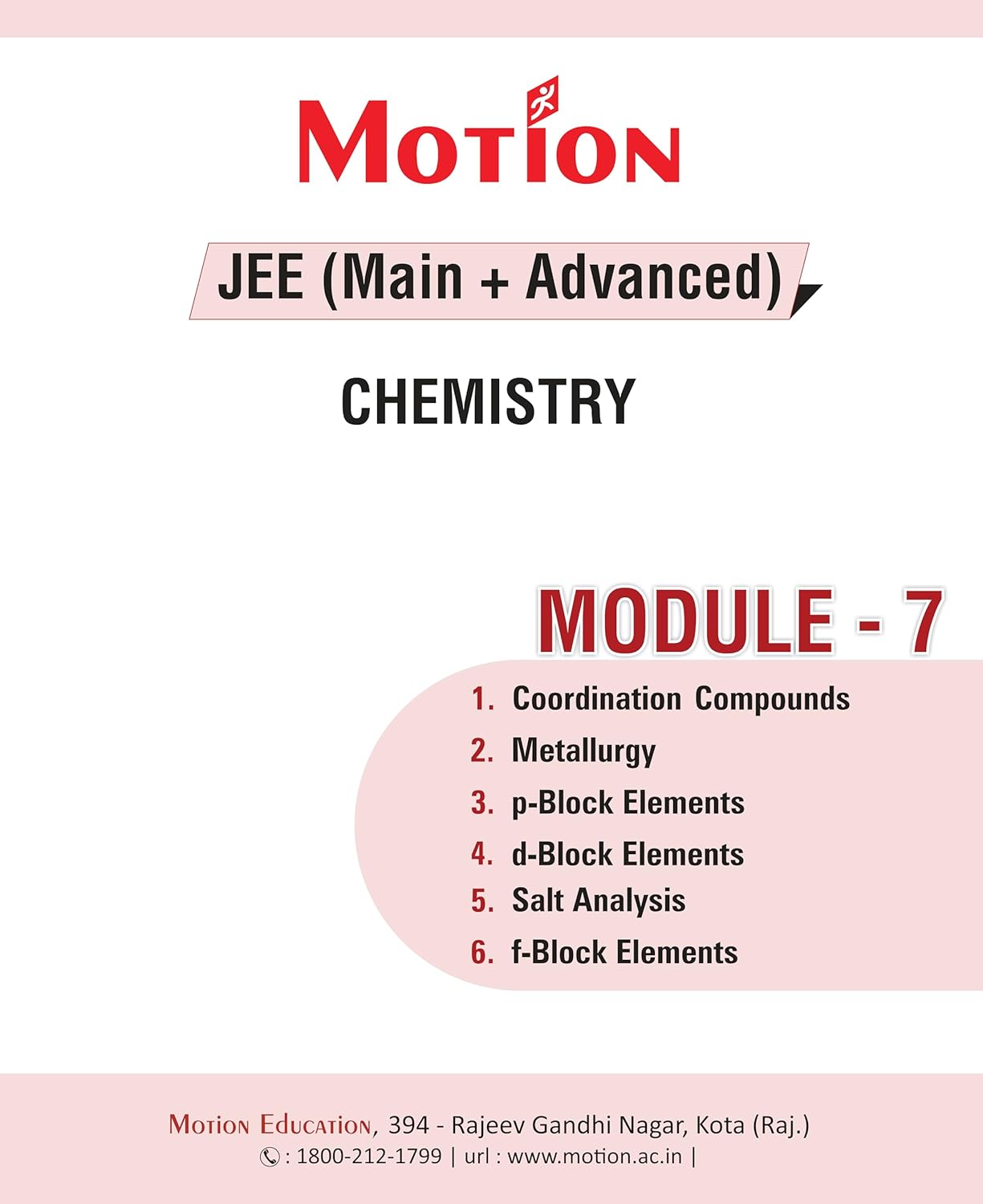 JEE (Mains Advanced) Motion Chemistry Handbook | Contain: Coordination Compounds, Metallurgy, p-Block Elements, d-Block Elements, Salt Analysis, f-Block Elements | Pages: 256