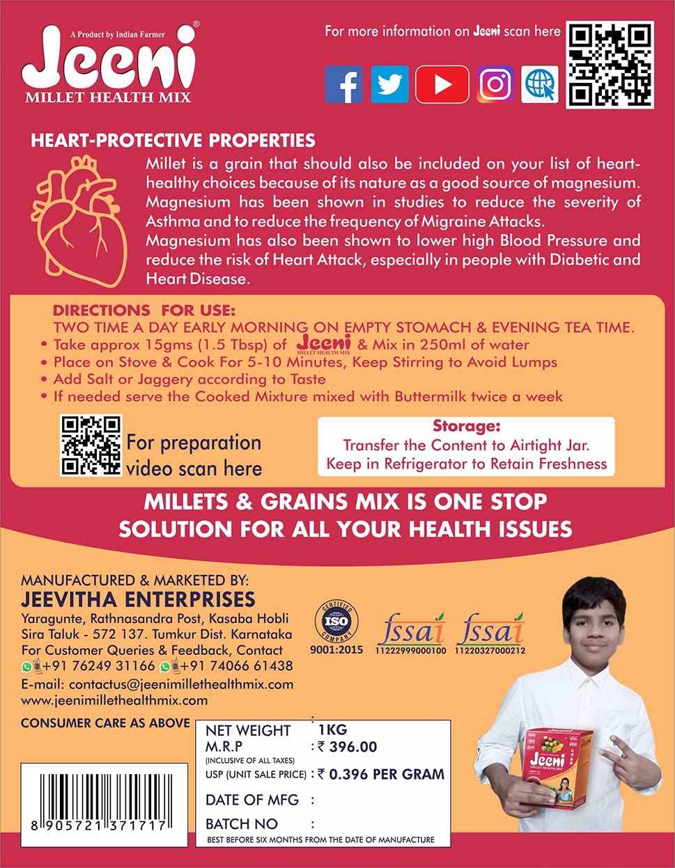 JEENI MILLET HEALTH MIX Gm | Millet And Multi Grains | All Natural Multigrain | Organic And Natural Product For 12 Year & Above Age