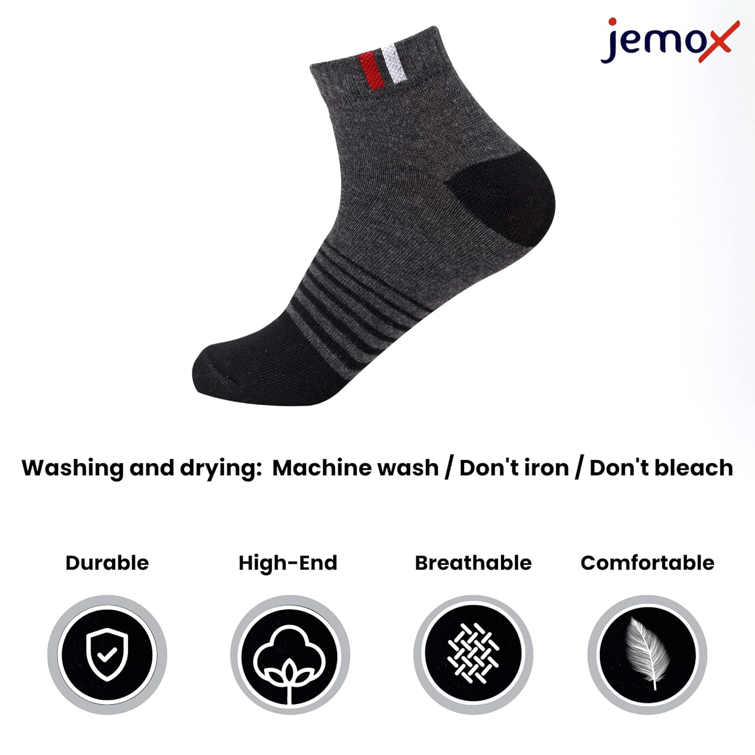 Get the best of comfort and durability with JEMOX socks for men and women in a wide range of colour options. Quarter socks, sneaker socks, crew sports socks, calf socks, ankle socks, low cut running socks are the varieties of socks for men and women offered by JEMOX in athletic socks.