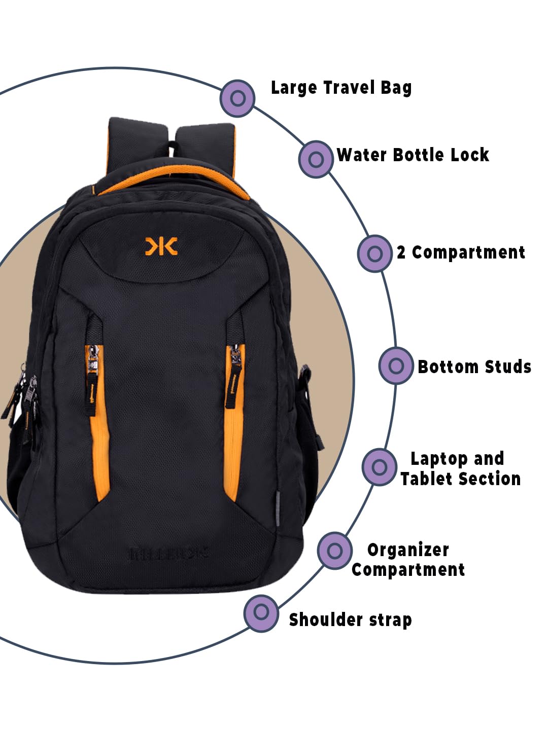 KILLER Derby 38L Large Laptop Backpack With 2 Compartments Polyester Travel Backpack