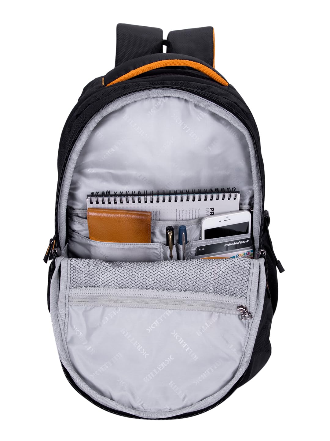It features 2 large well padded zippered compartments and One large easy access front pocket. Well padded laptop section fits upto 15.6 inch laptop, middle compartment is big enough to hold your office or weekend trip cloths or daily use belongings, front compartment with organizer section is to keep all official documents and small electronic gadgets, you can use it to store the charger, mouse, pen drive, notepad, pen and other essentials it also has one front zippered pockets for easy access items,. Killer Derby backpack features two mesh side pockets, where you can keep your water bottle or any other item for an quick access.