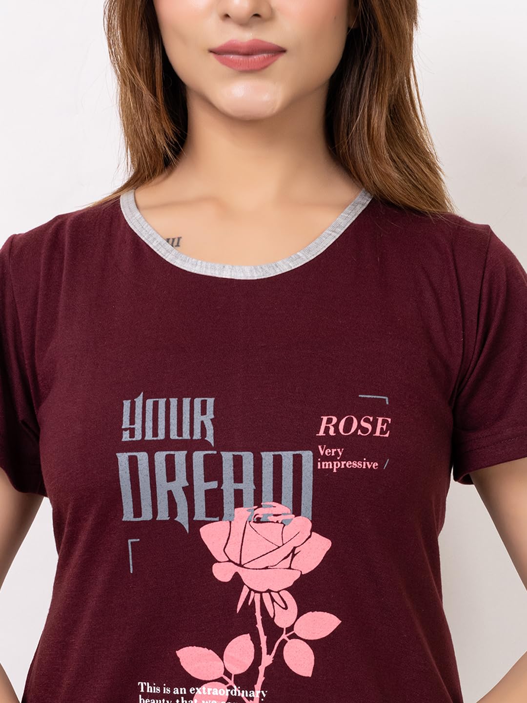 Kvetoo Plus Size Cotton Printed Long Night Suits Dresses for Women