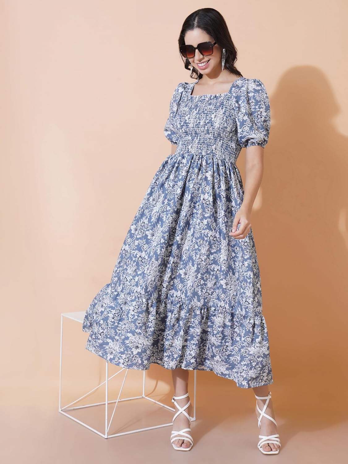 Generic Name : Effortless Elegance: Embrace Comfort and Style with Our Smocked A-line Midi Dress