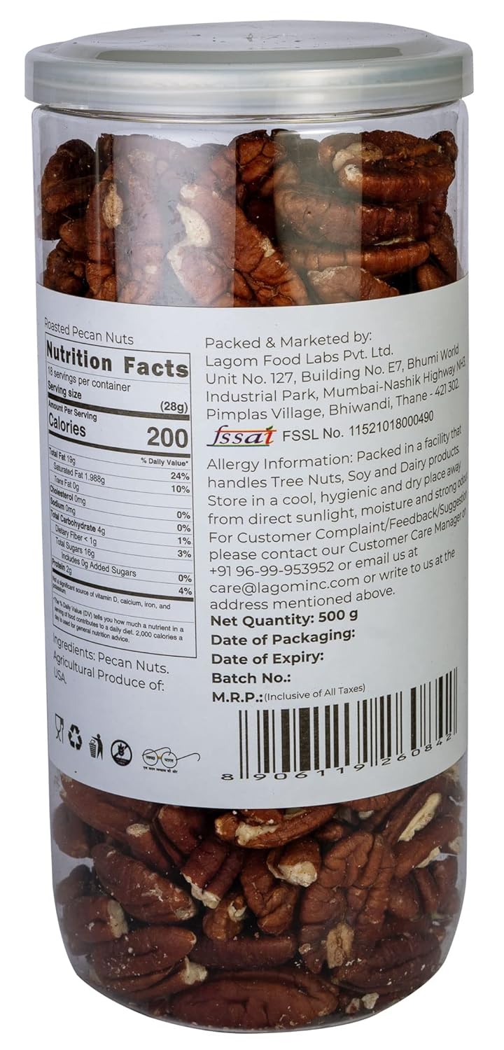 Lagom Gourmet Roasted Pecan Nuts 1 kg | No Salt | Dry Roasted | No Oil Used | All Natural | No Preservatives | No Additives | Gluten Free | Vegan | Plant Based | Non GMO | Nuts Dry Fruits