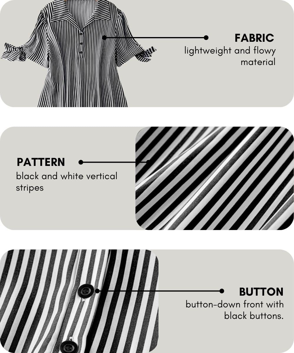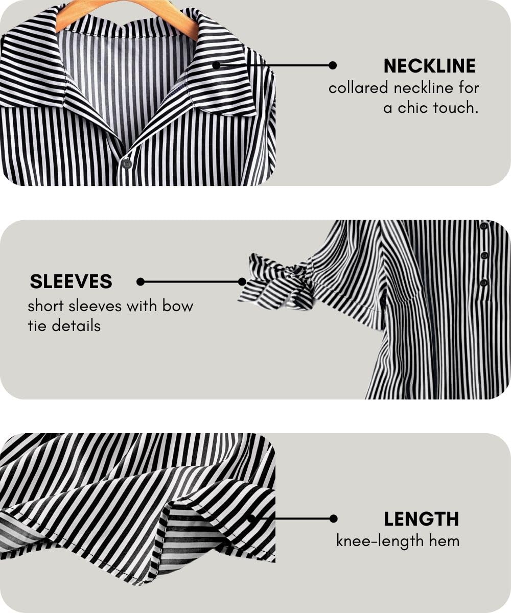 Leriya Fashion Vertical Striped Pattern | Short-Sleeve | Casual Wear | Dress with Tie | Summer Dress for Women