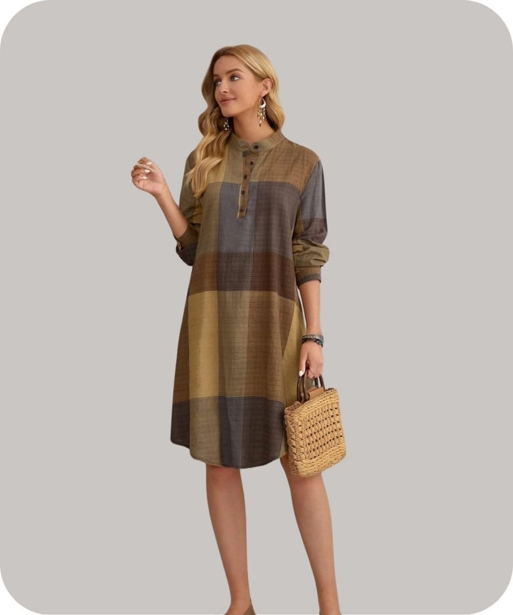 Review: “This dress is really pretty and comfortable. The red colour is vibrant, and the loose fit makes it easy to wear all day. It’s great for casual outings or even a cozy day indoors. The material feels soft and breathable. It also has a nice flow, and the checkered pattern adds a unique touch. I ordered this dress for my sister and she is very happy”