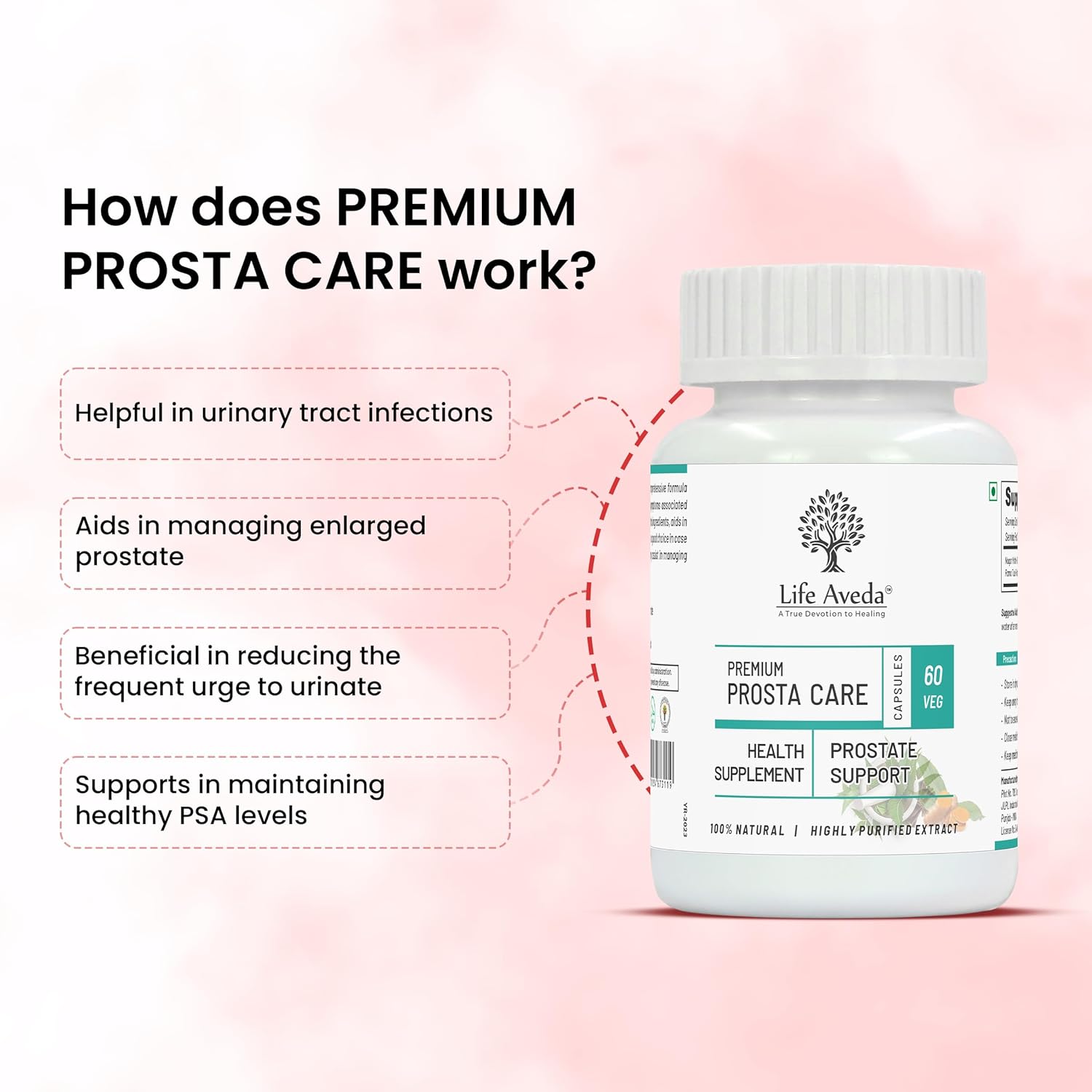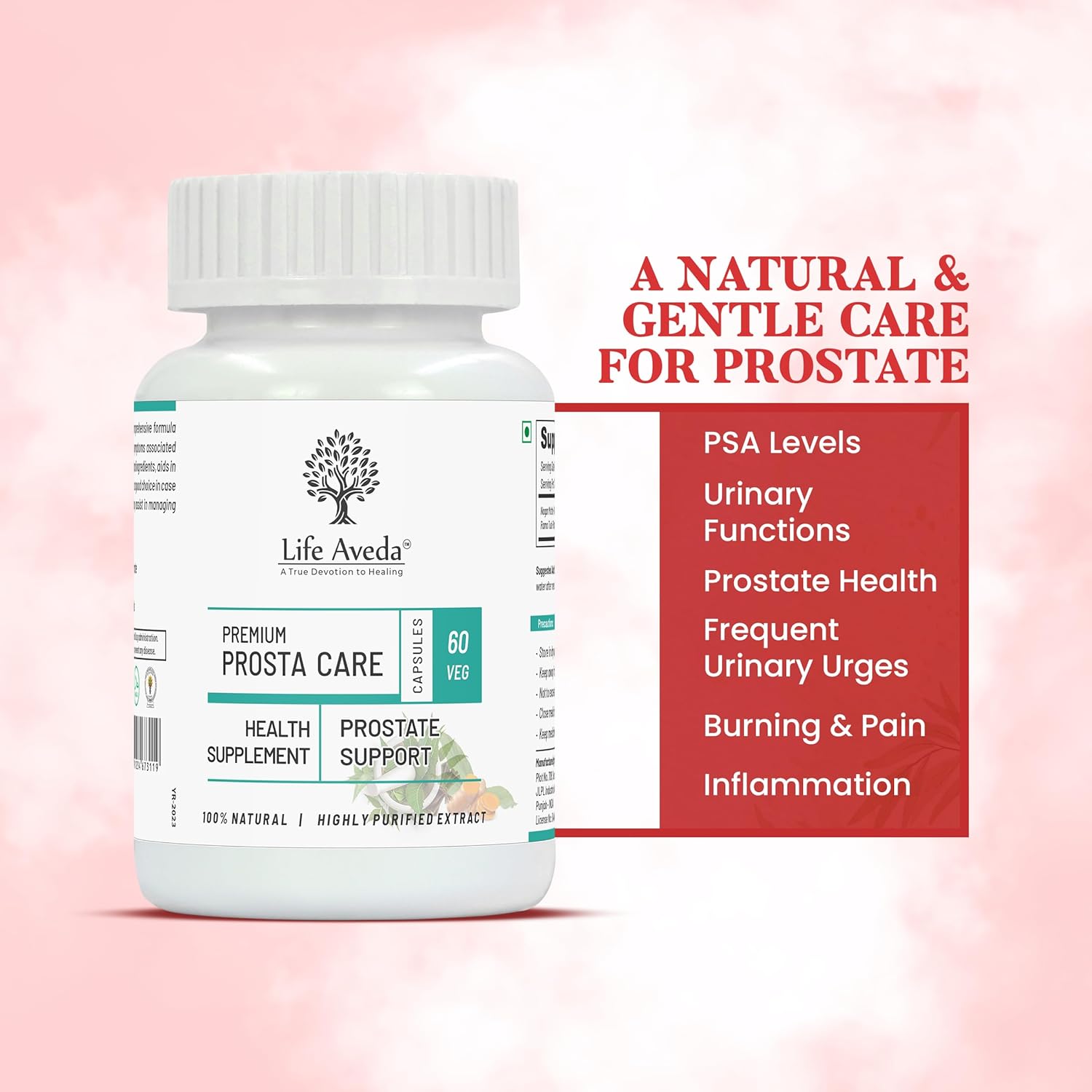 Life Aveda Premium Prosta Care – 60 Capsules | Ayurvedic Support for Mens Health| Helps with Inflammation, Burning, Infection & irritation