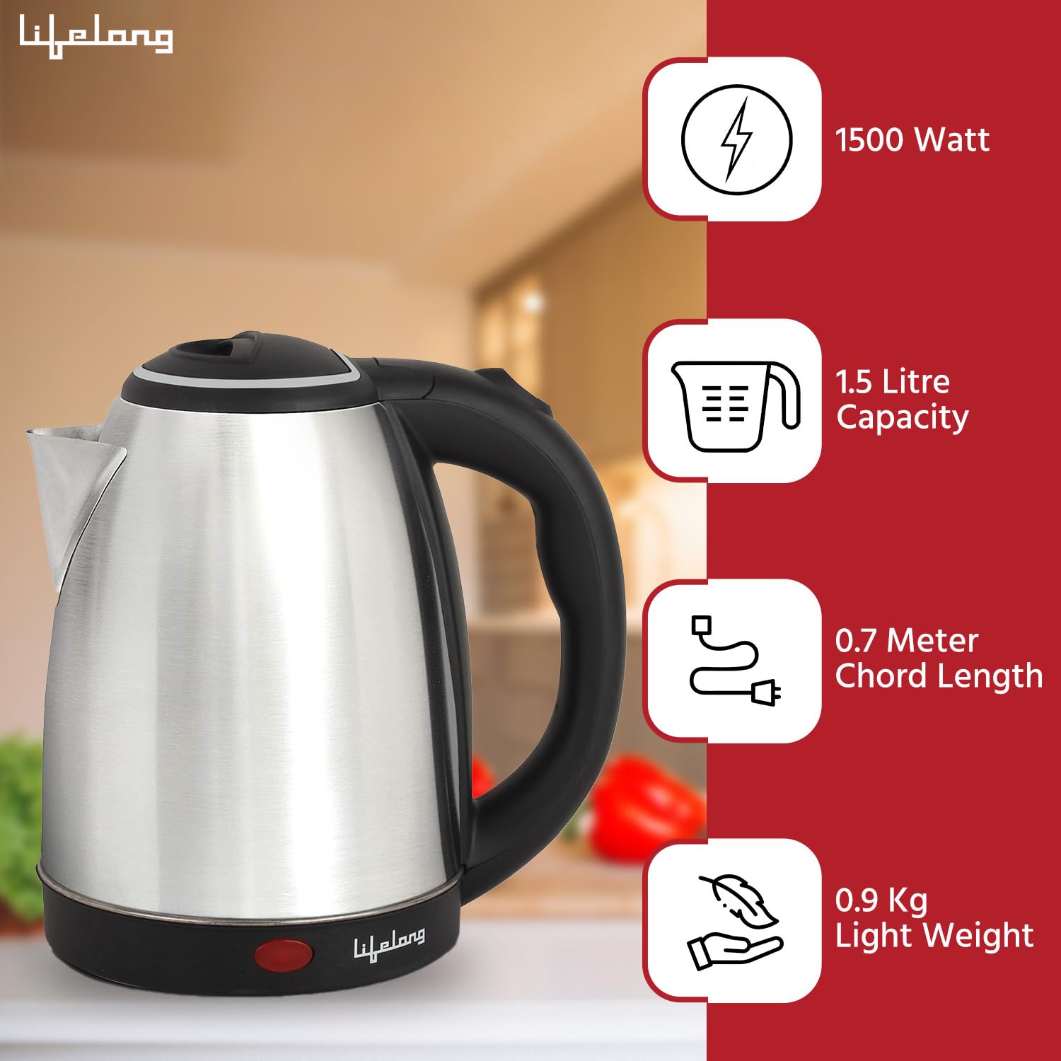 Lifelong Stainless Steel Mixer Grinder 500 W (2 Jar, Black) With Electric Kettle 1.5 Litre 1500W For Boiling Water, Soup (Silver) Super Combo | Combo For, 1.5 Liter, 500 Watt