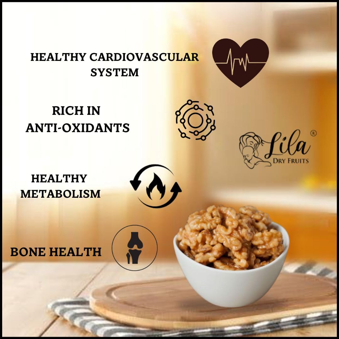 LILA DRY FRUITS 100% Natural Raw Walnut Kernels 2 pcs 500g Value Pack | Premium Akrot Giri | High in Protein & Iron | Low Calorie Nut | Dry Fruit