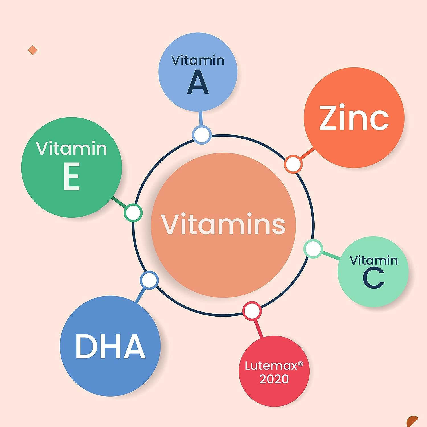 DHA, zinc, and other natural ingredients like amla extract help prevent dry eyes and redness