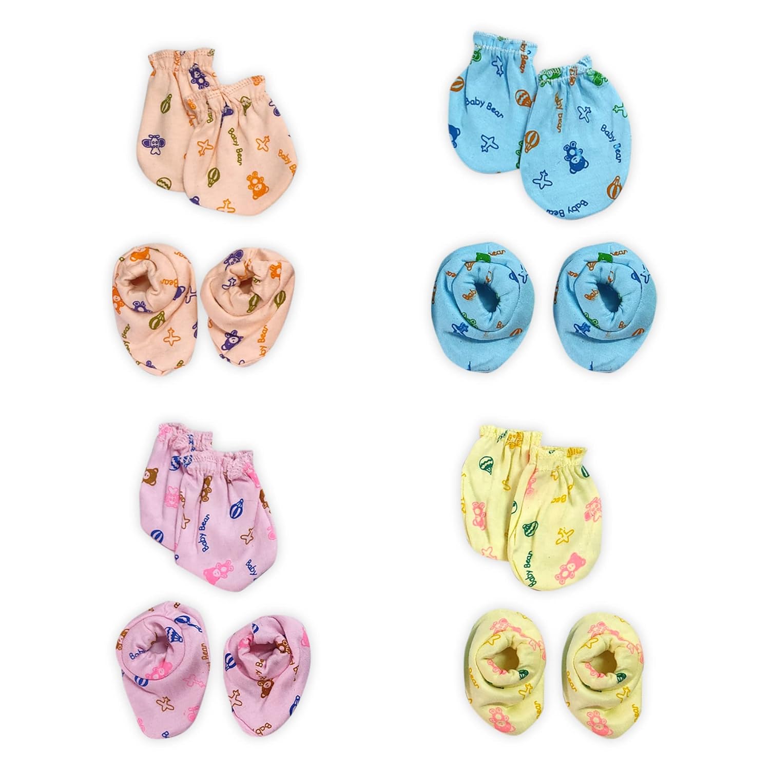 Love Baby Set of 4 Cotton Printed Mittens & Booties Set – 520 M Combo