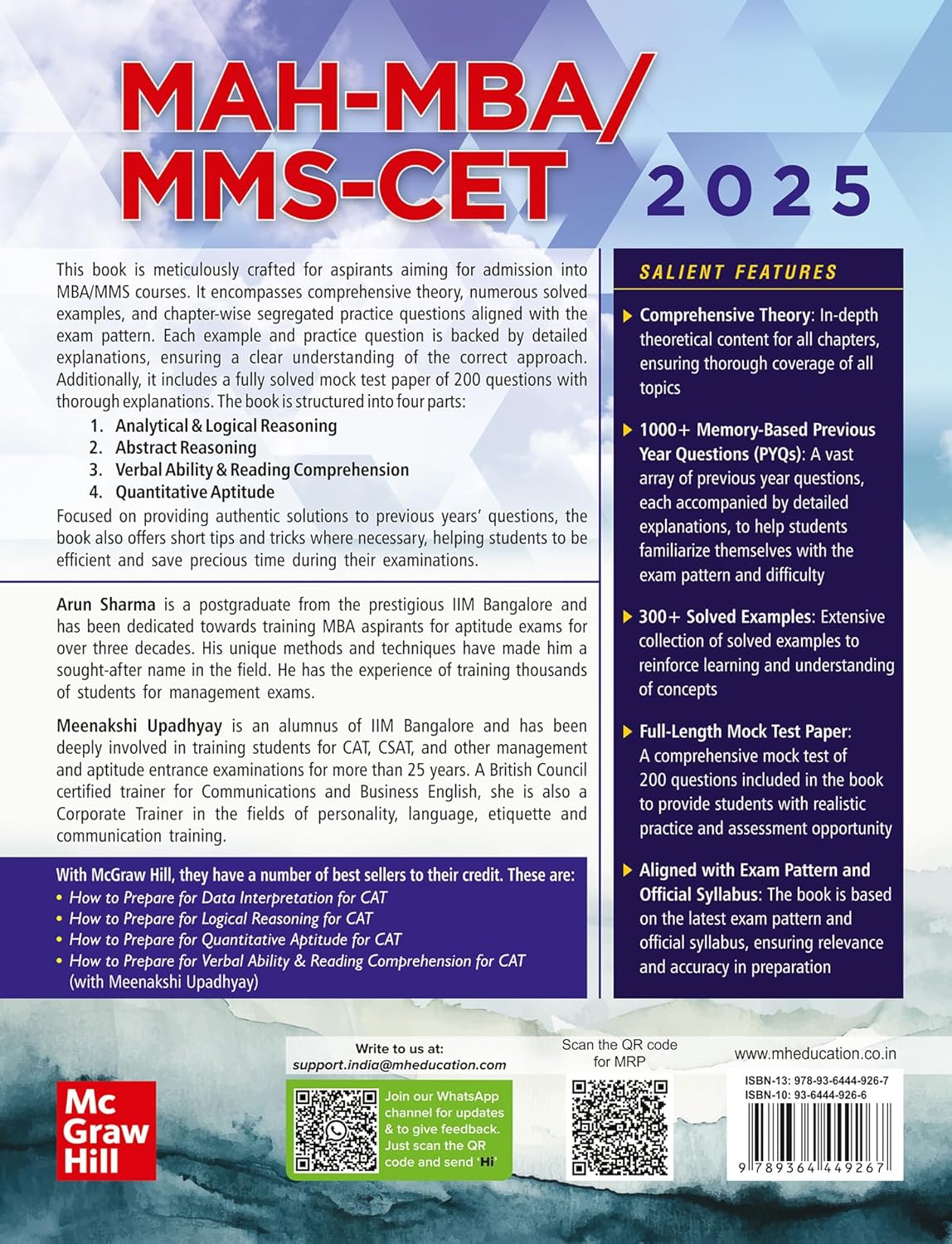 MAH-MBA/MMS-CET 2025 by Arun Sharma | Complete Guide with 300+ Solved Examples, 1000+ Previous Year Questions (PYQ), Full-Length Mock Test, Comprehensive Theory for Logical, Abstract, Verbal & Quantitative Aptitude | Maharashtra MBA CET 2025 | MH-CET Common Entrance Test | Latest Edition for 2025 Exam