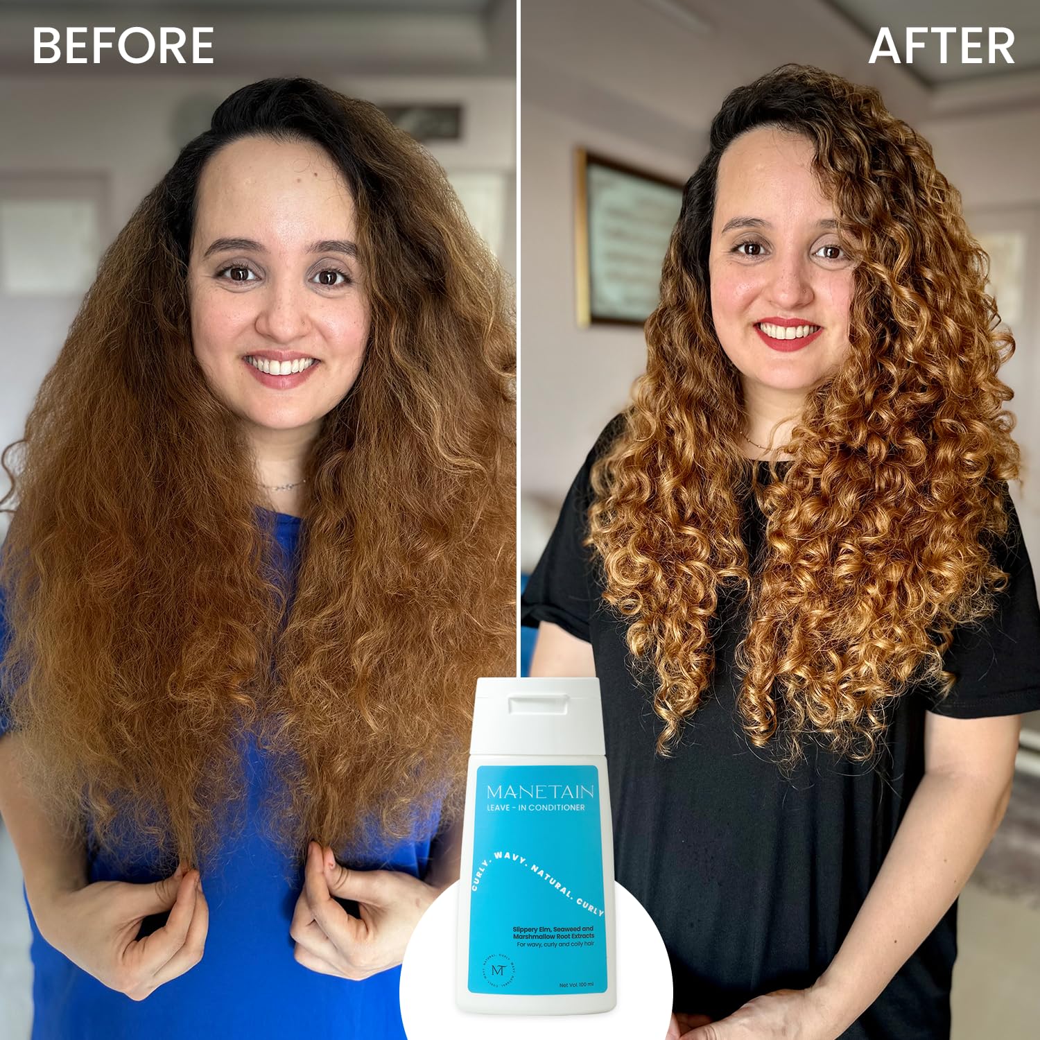 MANETAIN Leave-in Conditioner for Curly Hair 100ml | Lightweight, Moisturizing & Curl-Enhancing | Frizz Control with Slippery Elm, Seaweed & Marshmallow Root Extracts | Hydrated, Defined, & Shiny Curls |