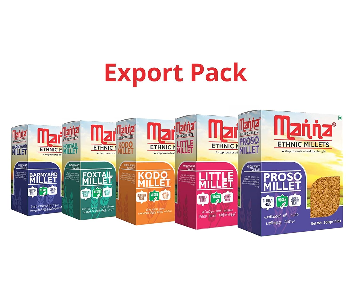 Manna Millets 2.5Kg Combo Pack of 5, Unpolished Millets, Siridhanya, Certified Low GI, Little 500g, Kodo 500g, Foxtail 500g,Barnyard 500g,Proso 500g, Natural Grains 500g