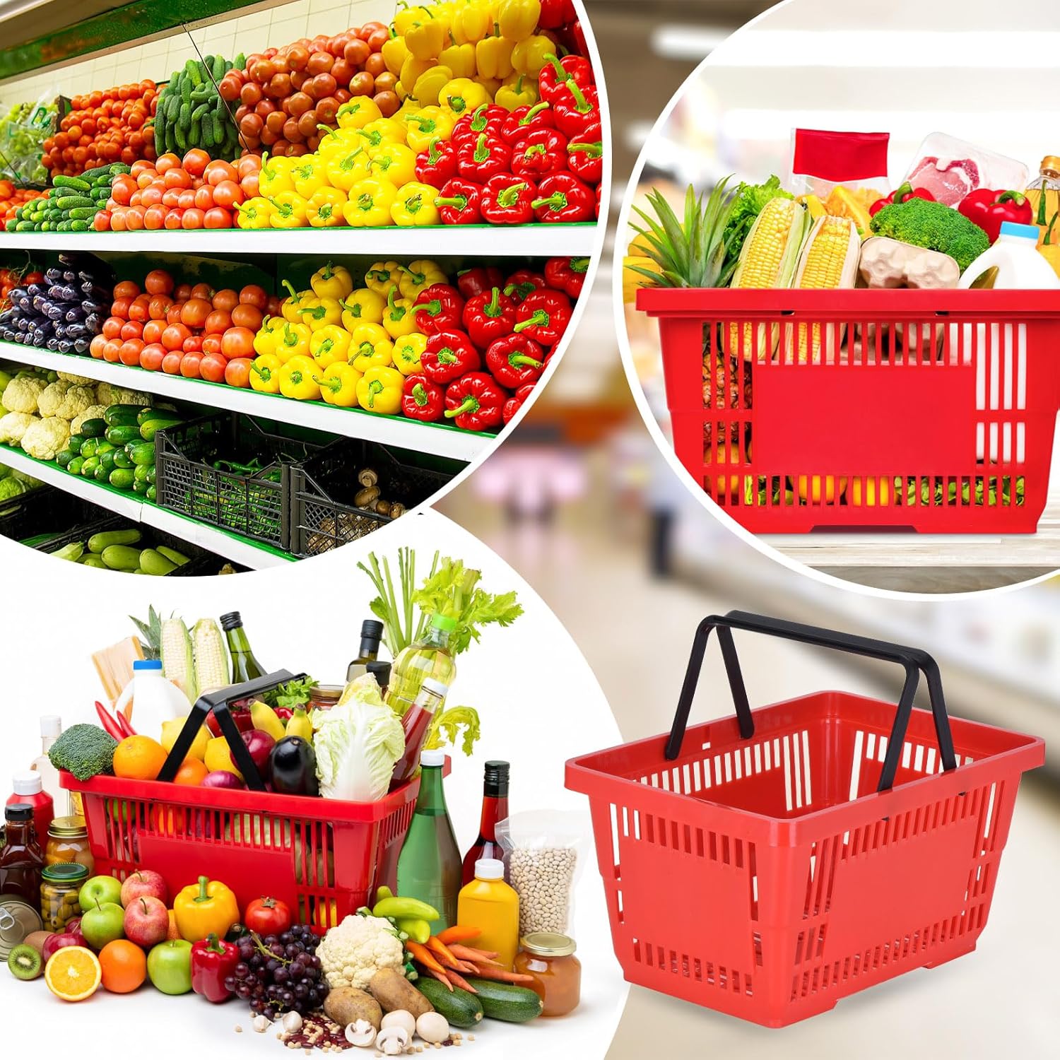 Use our plastic shopping baskets with handles to sort items, which can be more convenient to store or display your items. A must have for grocery shopping, fruit stores, retail stores, flower shops, supermarkets, etc; Keep your closets, pantry, kitchen cabinets, garage shelves, and more organized with easy access.