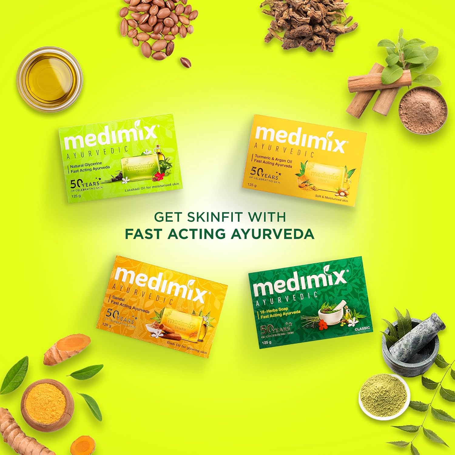 Medimix Ayurvedic Natural Glycerine Bathing Soap With Lakshadi Oil For Soft, Supple & Moisturised Skin 125g (Combo Pack of 8) | Natural | Herbal | Paraben-free & Sulphate-free | 100% Vegan