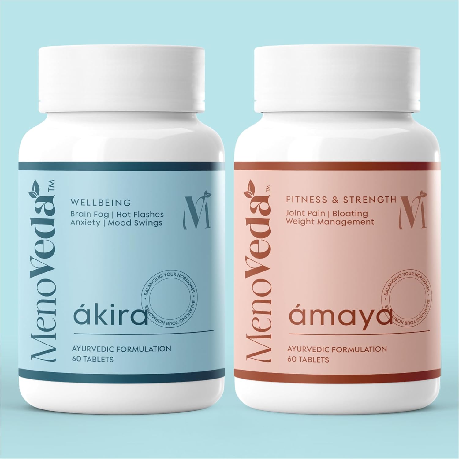 Menoveda Akira Amaya Combo For Emotional Wellbeing and Physical Health | Perimenopause & Menopause Supplements For Women | Balances Hormone Naturally | Helps Managing Hot Flashes Weight Gain, Sleep Issues | 1 Month Supply – 120 Tablets