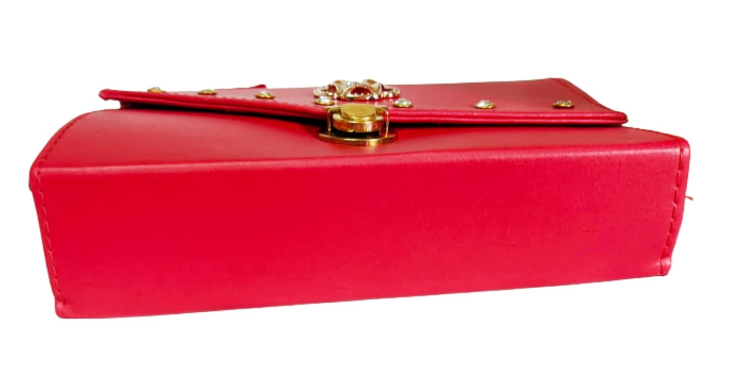 It is a multipurpose Sling Bag for Today’s Girls. You can put Your small Accessories like make-up kit, Comb, Cards, Key chain, Loose Money, Coins, Small perfume Bottle, Tissue Papers and even Your Cell Phone in it. It has 2 main Compartments with one inner Zipper Pockets, It has one adjustable Shoulder Strap. Medium Sized Sling Bag cum cross body bag Used by both Girls and Women. You can Used It for daily purposes or in party or functions. Decorative with Beads and Nags with one big Brooch In front, Closure Type is Push Button In between, Safely Hold all your essentials in it. It is available in 7 Colors, It Is no Doubt Perfect Gift for your Loved Ones. So this is one sling bag with very reasonable price and so many multiple uses, Hurry to grab it Unless the stock ends up.