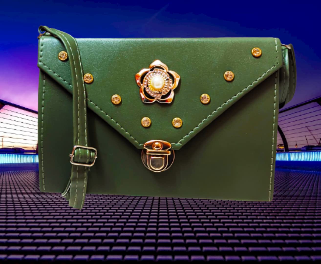 MN’S HUB BOX SLING BAG MEDIUM SIZED DECORATIVE WITH NAGS FOR GIRLS AND WOMEN FOR PARTY AND FUNCTION PURPOSES (GREEN)