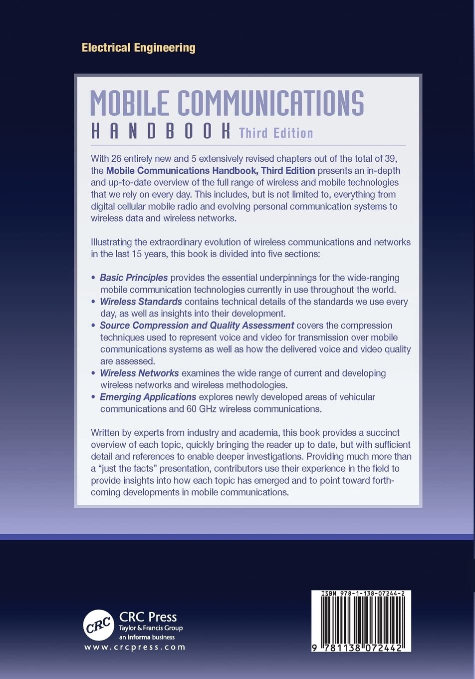 With 26 entirely new and 5 extensively revised chapters out of the total of 39, the Mobile Communications Handbook, Third Edition presents an in-depth and up-to-date overview of the full range of wireless and mobile technologies that we rely on every day. This includes, but is not limited to, everything from digital cellular mobile radio and evolving personal communication systems to wireless data and wireless networks