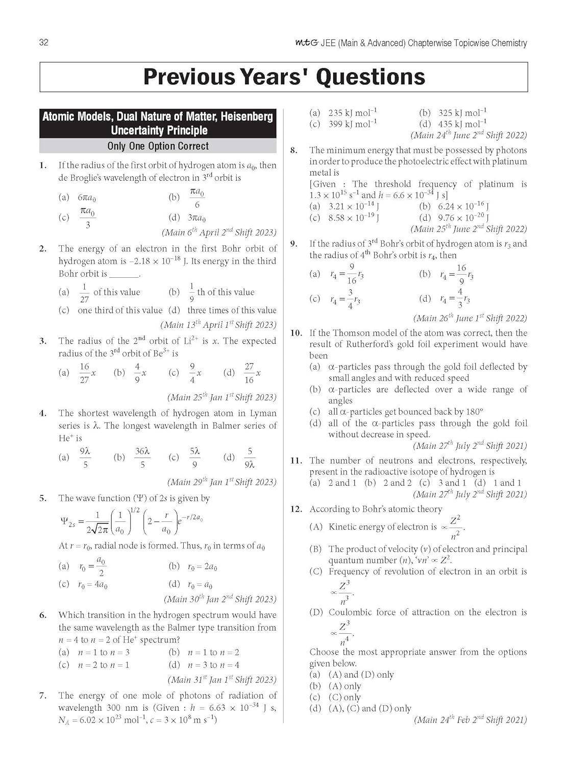 MTG 46 + 22 Years JEE Main and IIT JEE Advanced Previous Years Solved Question Papers with Chapterwise Topicwise Solutions Chemistry Book – JEE PYQ … For 2024 Exam [Paperback] MTG Editorial Board MTG Editorial Board
