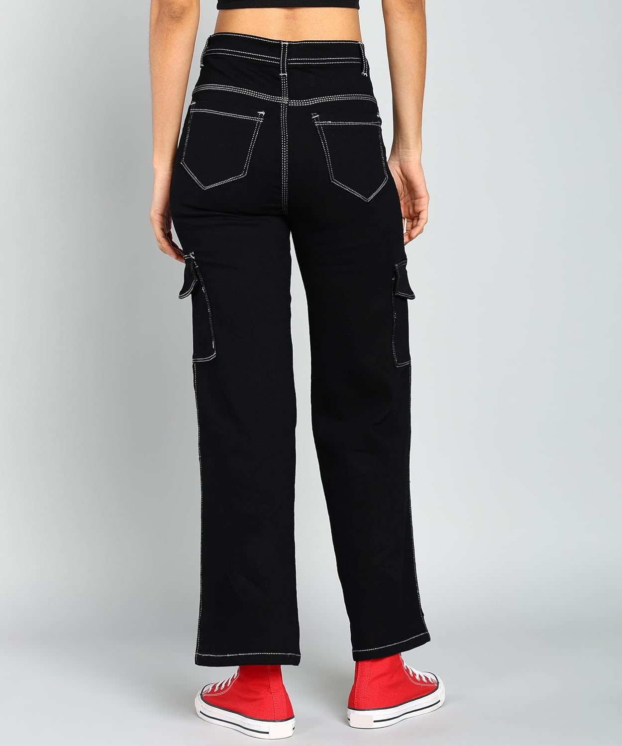 Nifty Women’s Cotton Blend Stretchable Black Cargo Jeans