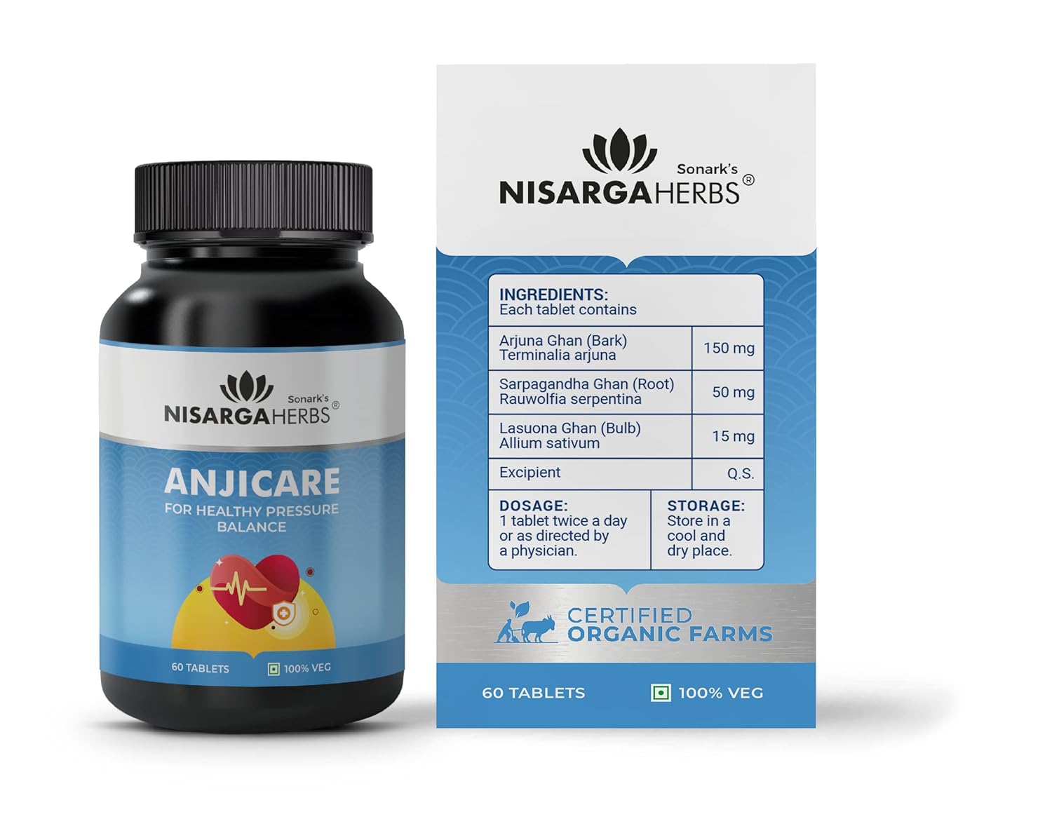 Review: I recently started using Nisarga Herbs’ Anjicare, and I must say it has made a significant positive impact on my blood pressure and overall heart health. Here’s my review of this Ayurvedic product:Effectiveness: ⭐⭐⭐⭐⭐ (5/5)Anjicare has been remarkably effective in helping me regulate my blood pressure. I noticed a gradual but steady improvement in my readings after incorporating it into my daily routine. It provides consistent support for maintaining healthy blood pressure levels.Natural Ingredients: ⭐⭐⭐⭐⭐ (5/5)One of the key reasons I opted for Anjicare is its Ayurvedic formulation. It contains natural ingredients known for their heart-healthy benefits. I appreciate that it doesn’t have any synthetic additives or chemicals.Ease of Use: ⭐⭐⭐⭐ (4/5)Taking two tablets a day is simple and convenient. However, a