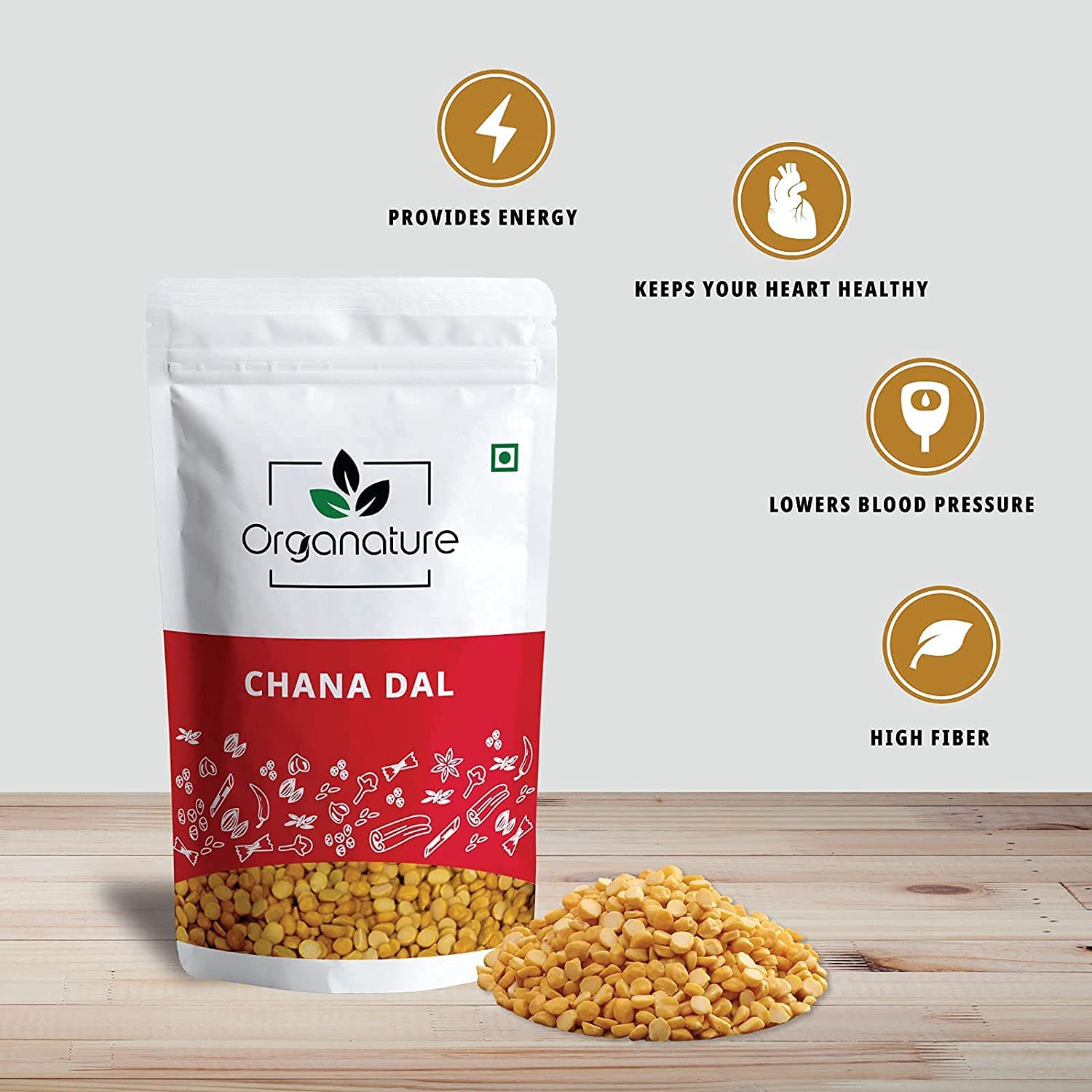 Known to be one of the best natural sources of protein, Organature Organic Chana Dal is unpolished, i.e. it does not undergo any artifical polishing with water, oil or leather, thereby retaining its goodness and protein content.