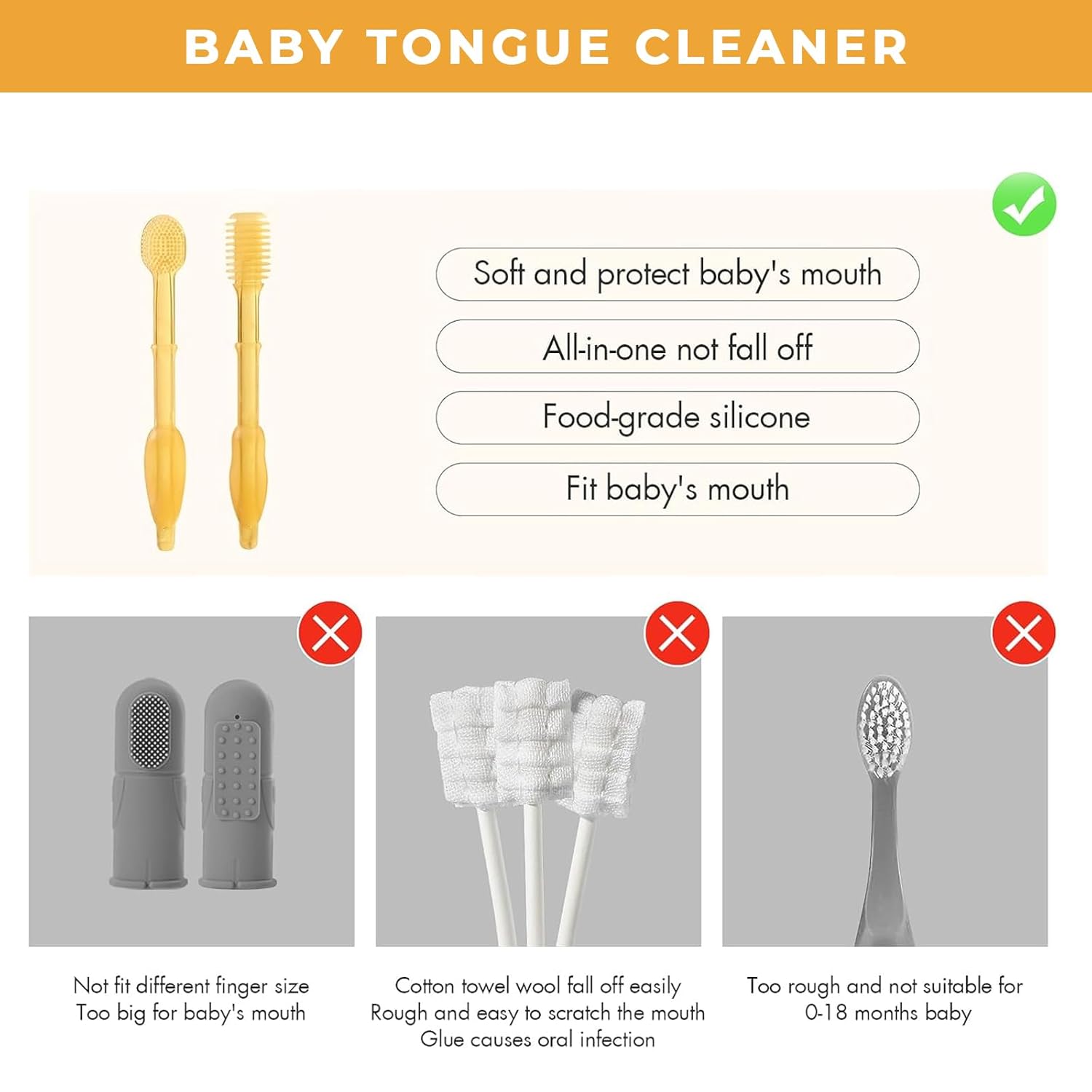 Dual-Function Cleaning Tools: Equipped with a toothbrush for teeth and a tongue cleaner, it provides complete oral care for your baby. It helps remove residue and maintain gum health, making it a must-have for newborn products and baby kits.