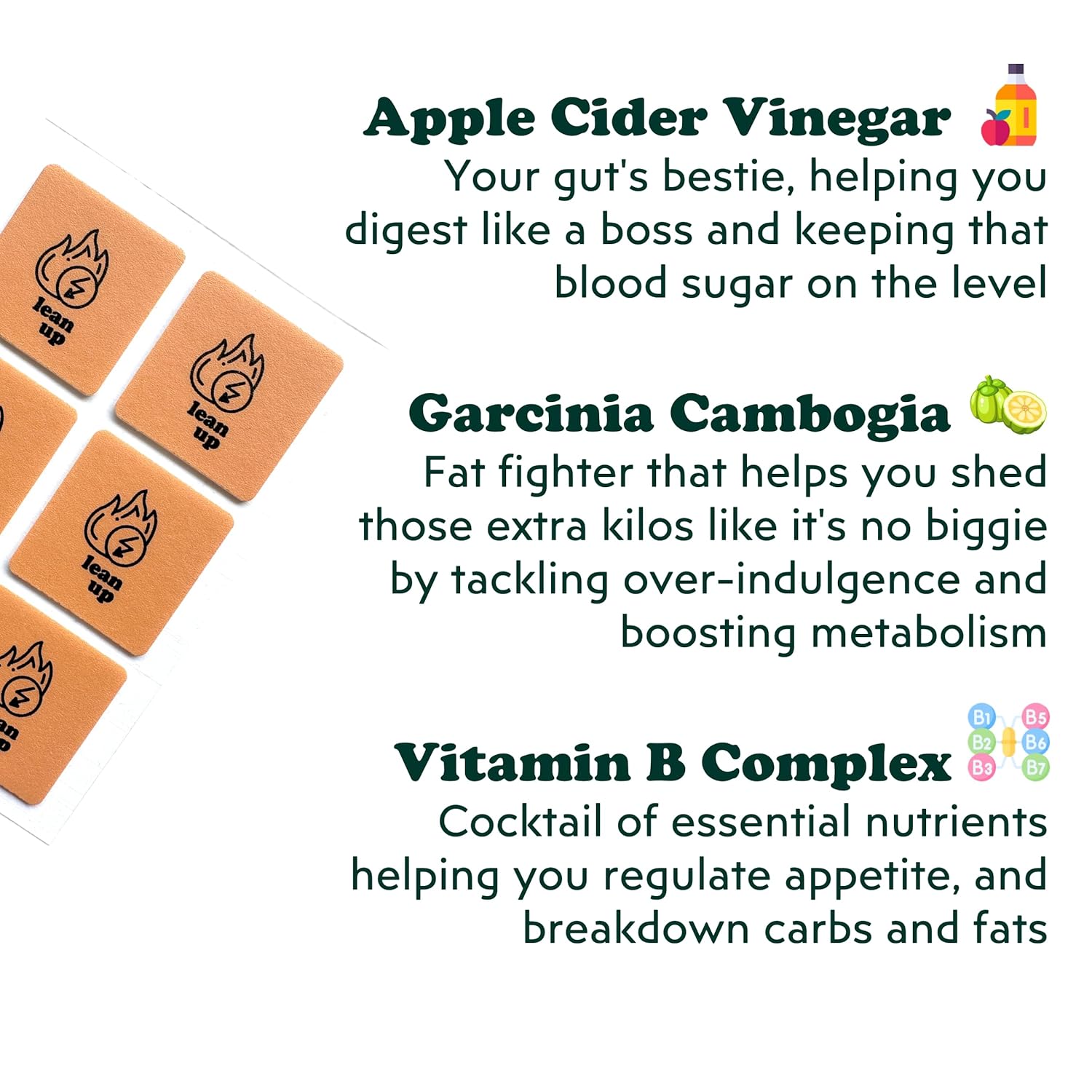 PATCH UP – Lean Up | Apple Cider Vinegar (ACV) patches | Gut and weight management | Improves digestion | Boosts metabolism | Reduces cravings and bloating (Standard, 12.00)
