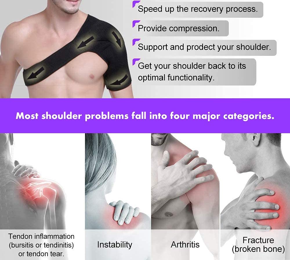 If you have a painful shoulder, you may consider first a non-invasive treatment like our shoulder support brace. Ice and isolating arm motions, sometimes are all that’s needed to heal your sprains, strains, or tears. This shoulder brace for pain relief offers you the right compression, adjustable upon your needs. Under its pressure pad you can also place ice packs for cold therapy